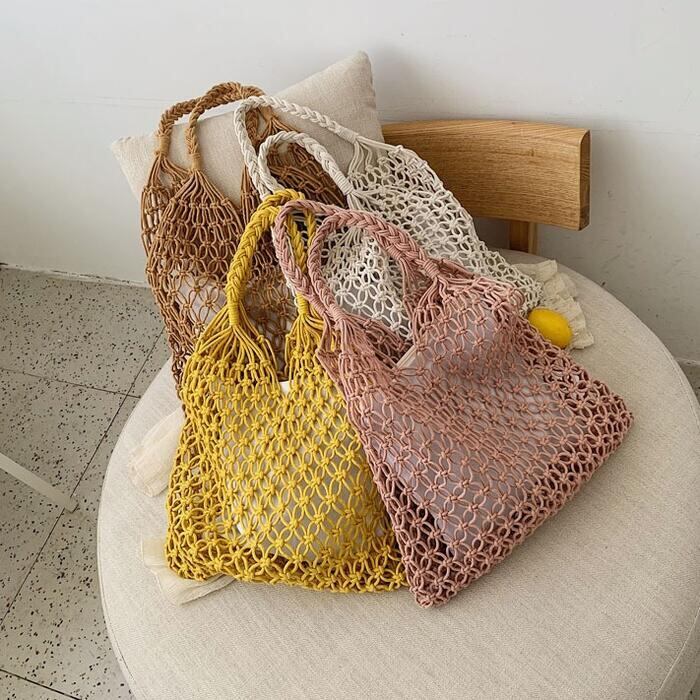 全8色 ワイヤーバッグ かごバッグ メッシュ ハンドバッグ トートバッグ 編みバッグ レディース エコバッグ ストローバッグ マクラメ 可愛い おしゃれ ネット ブラウン カーキ イエロー グリーン 緑 ピンク ホワイト 白 グレー 春 夏 秋 20代 30代 40代 50代