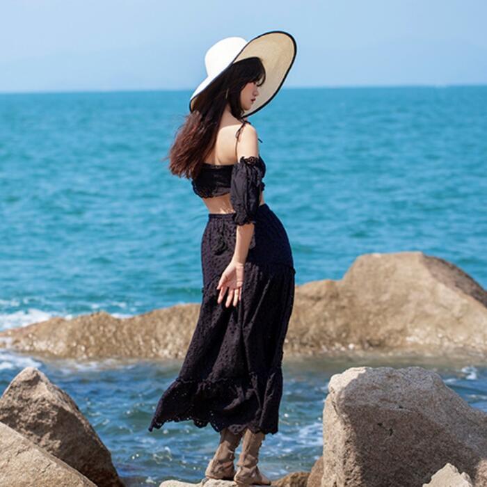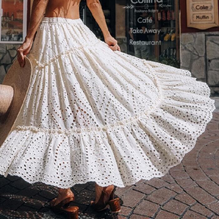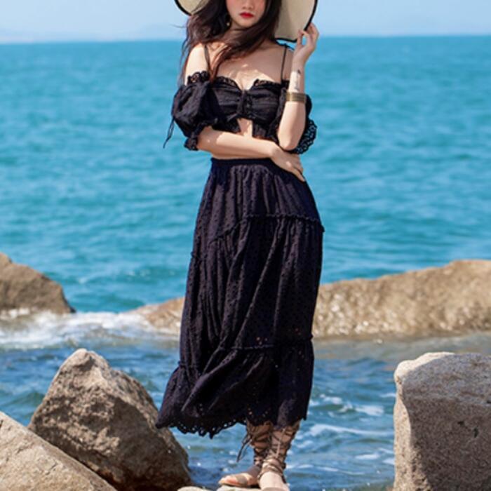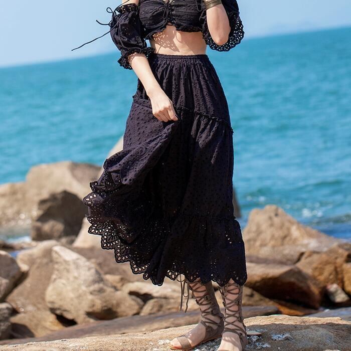 全3色 ティアード スカート ロングスカート ロング丈 レース カジュアル レディース フェミニン 大人 可愛い きれいめ フレア ウエストゴム 楽ちん おしゃれ ベージュ ホワイト 白 ブラック 黒 春 秋 夏 20代 30代 40代 50代