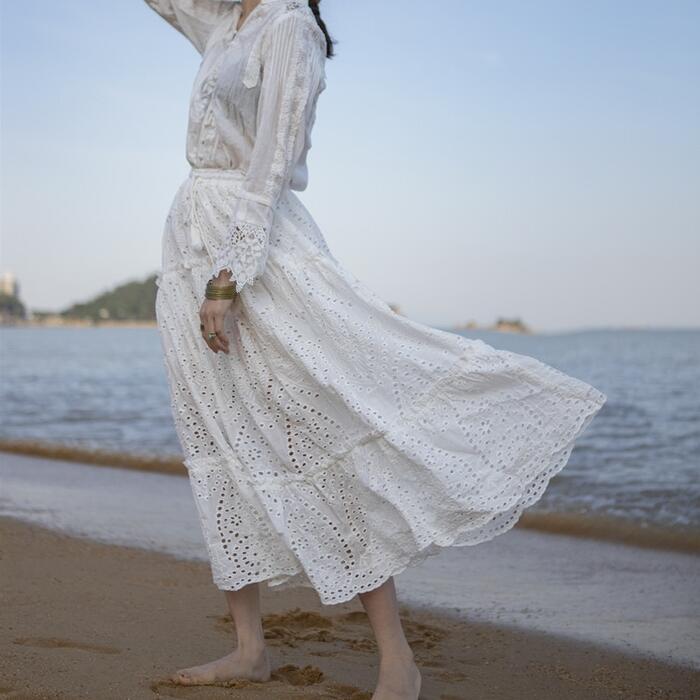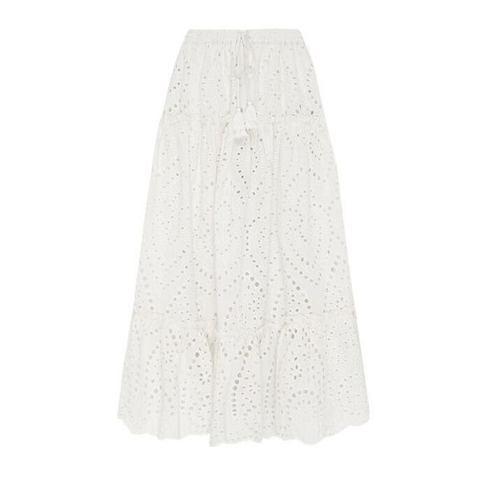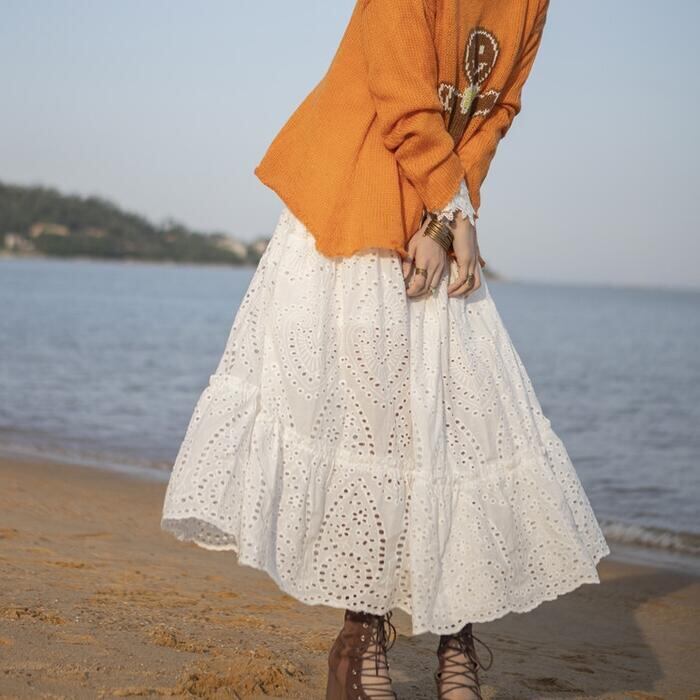 大人ガーリーな着こなしが叶うカットワークレーススカート。