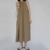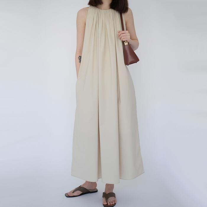 全3色 ワンピース ロングワンピ レディース エレガント きれいめ カジュアル ロング丈 おしゃれ 大人 可愛い ワンピ ドレス ノースリーブ ゆったり 体型カバー シンプル フェミニン ベージュ ホワイト 白 ネイビー 春 秋 夏 20代 30代 40代 50代