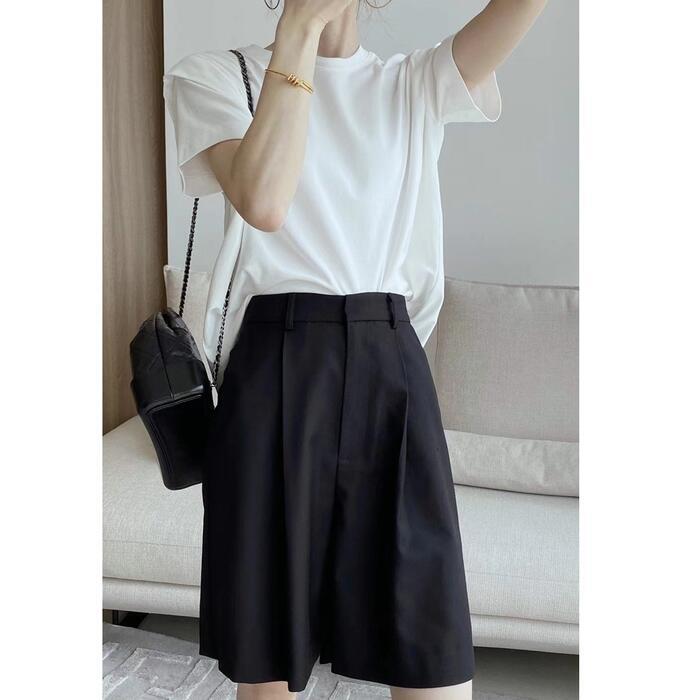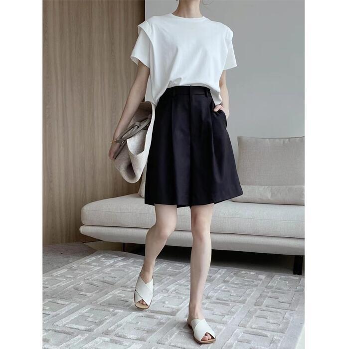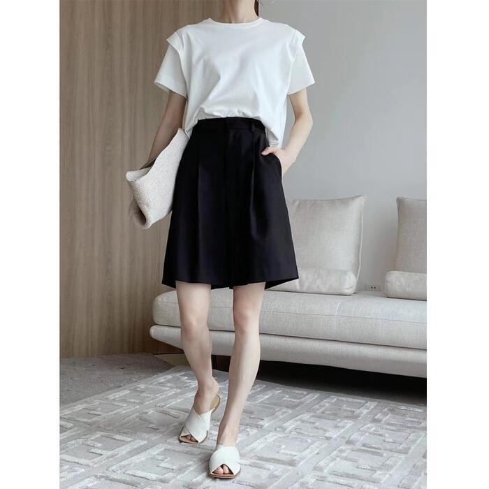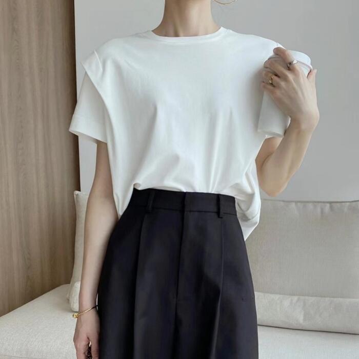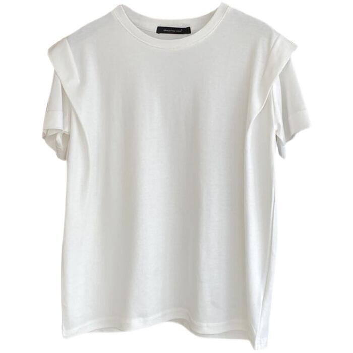 トップス Tシャツ カットソー シャツ レディース 半袖 きれいめ カジュアル おしゃれ 大人 可愛い フェミニン クルーネック パワーショルダー 体型カバー ゆったり リラックス ナチュラル ホワイト 白 春 夏 秋 20代 30代 40代 50代