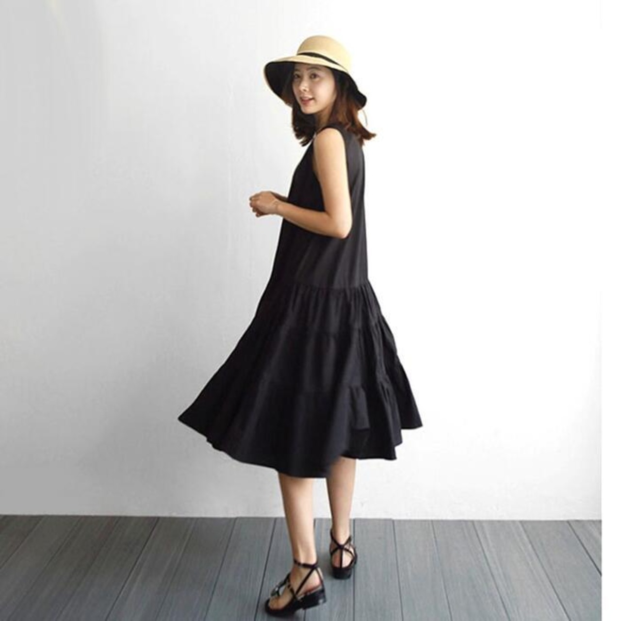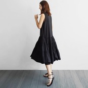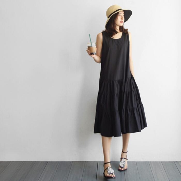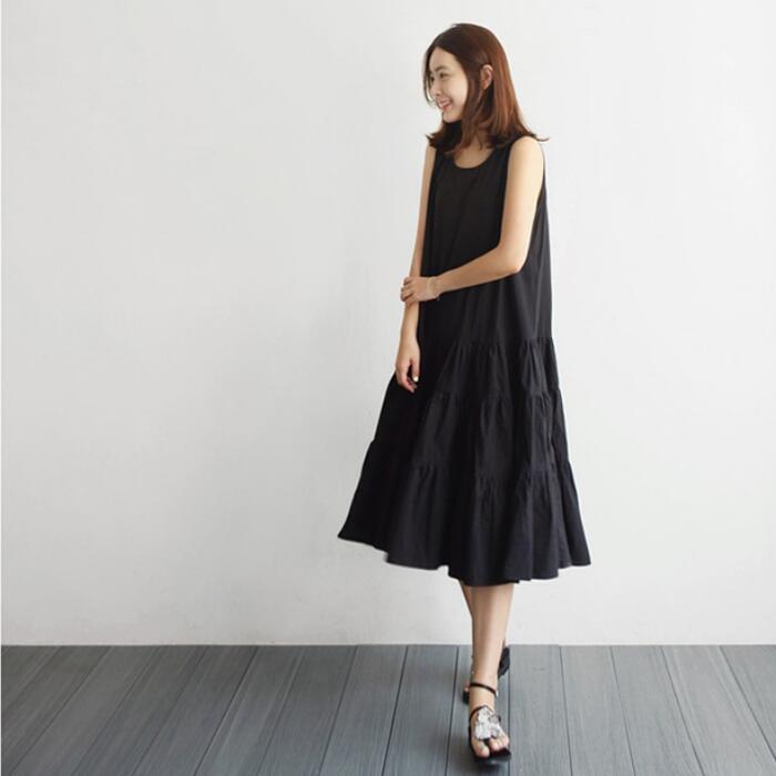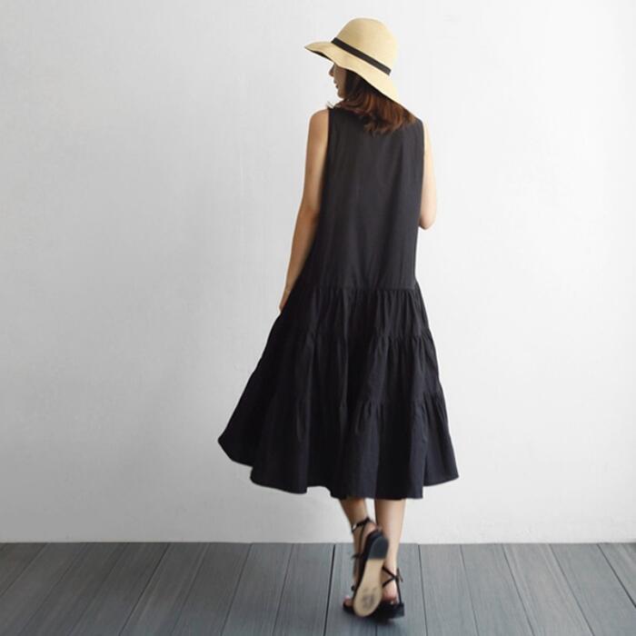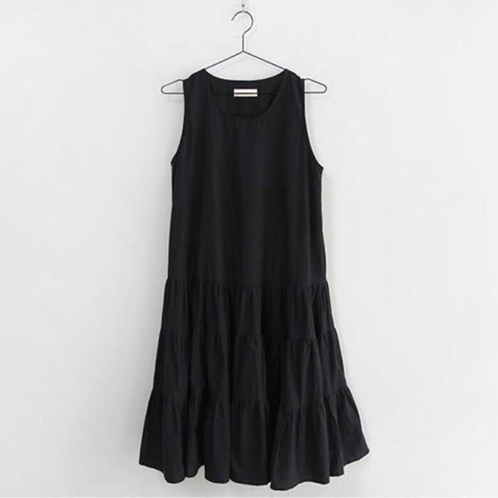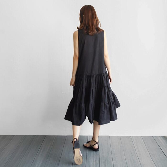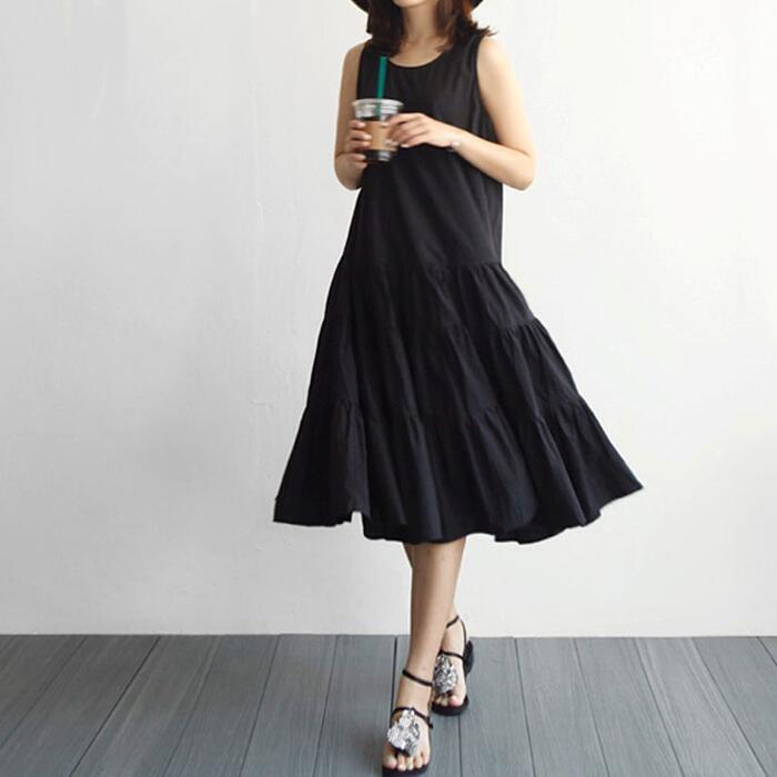 大きいサイズティアード ワンピース ロングワンピ レディース エレガント きれいめ カジュアル ミモレ丈 おしゃれ 大人 可愛い ワンピ ドレス ノースリーブ ゆったり 体型カバー シンプル フェミニン ブラック 黒 春 秋 夏 20代 30代 40代 50代