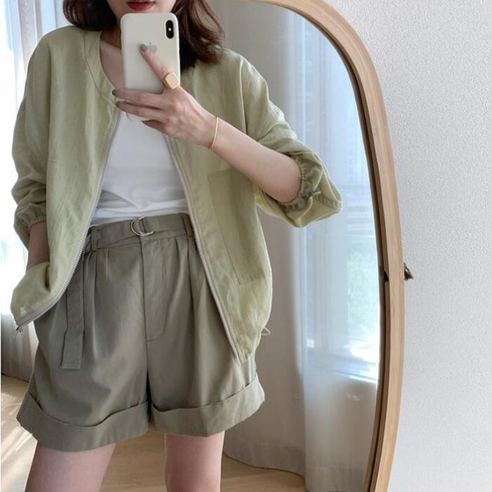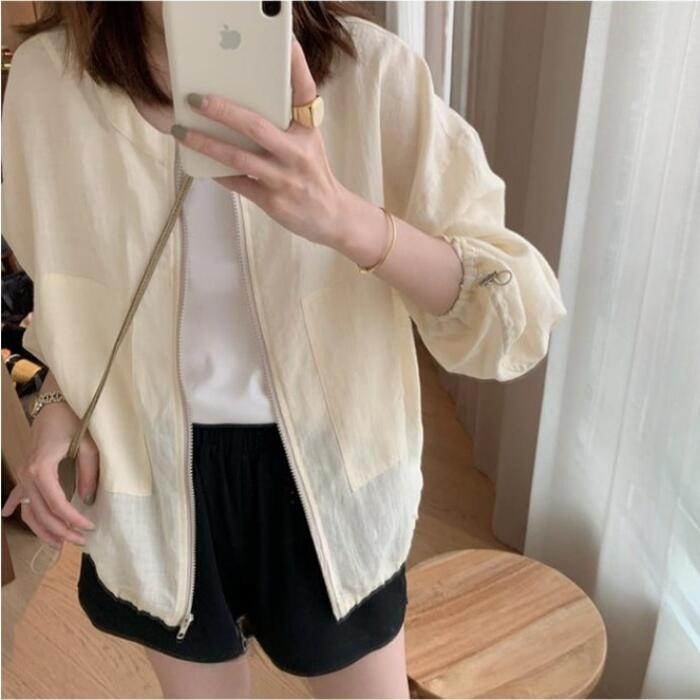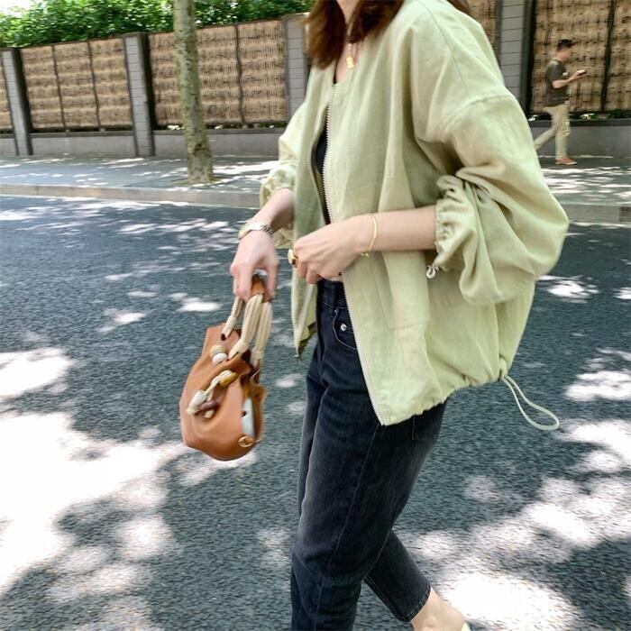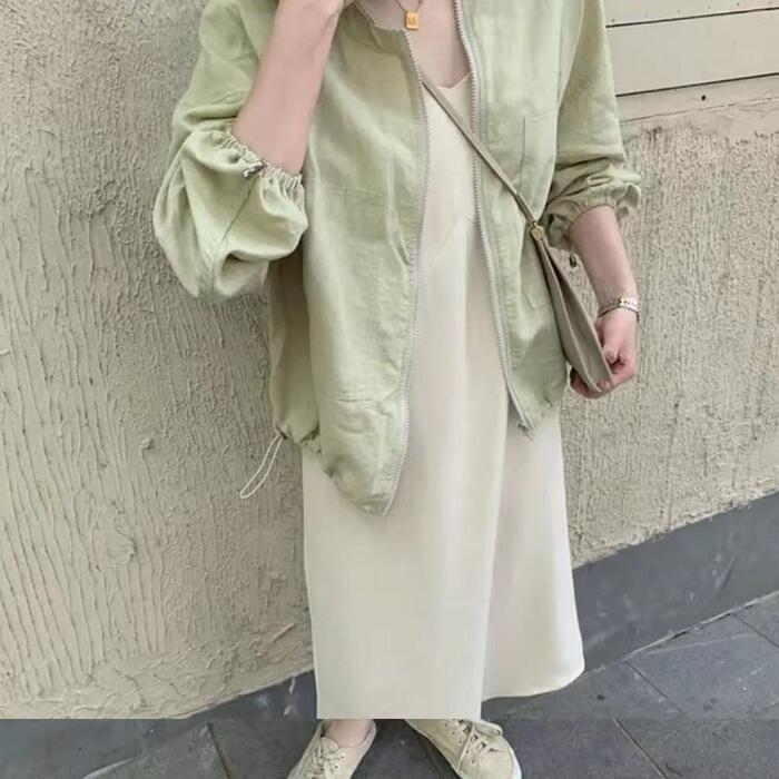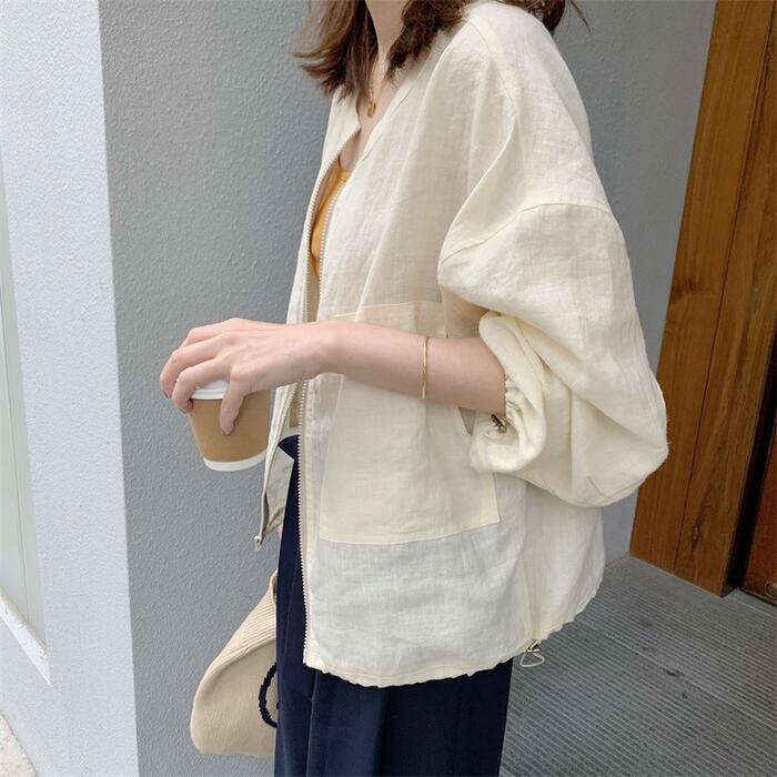 全2色 リネン リネン混 トップス ジャケット アウター カーディガン レディース カジュアル 長袖 ジップアップ おしゃれ 大人 可愛い スポーティ 綿麻 ナチュラル かっこいい 羽織 イエロー グリーン 緑 春 夏 秋 20代 30代 40代 50代