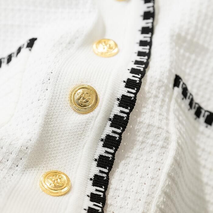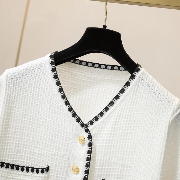 配色の縁取りがアクセントになったニットカーディガン。