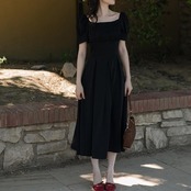 デコルテを綺麗に魅せてくれるスクエアネックワンピース。