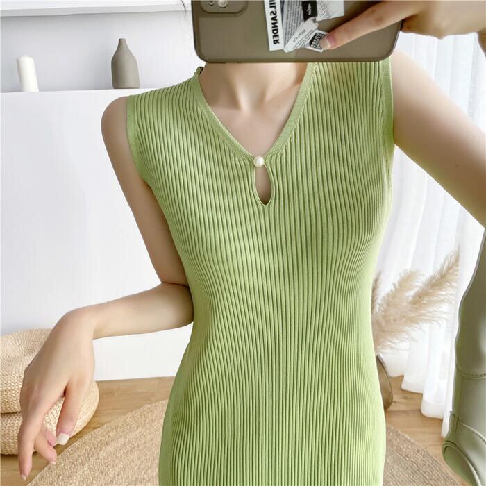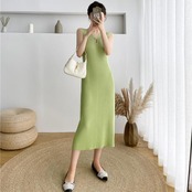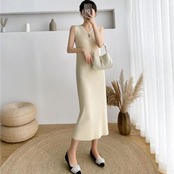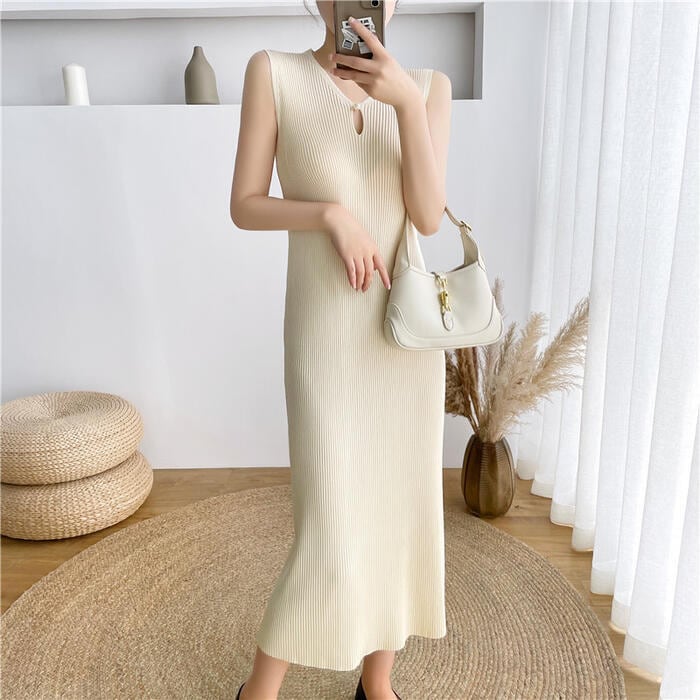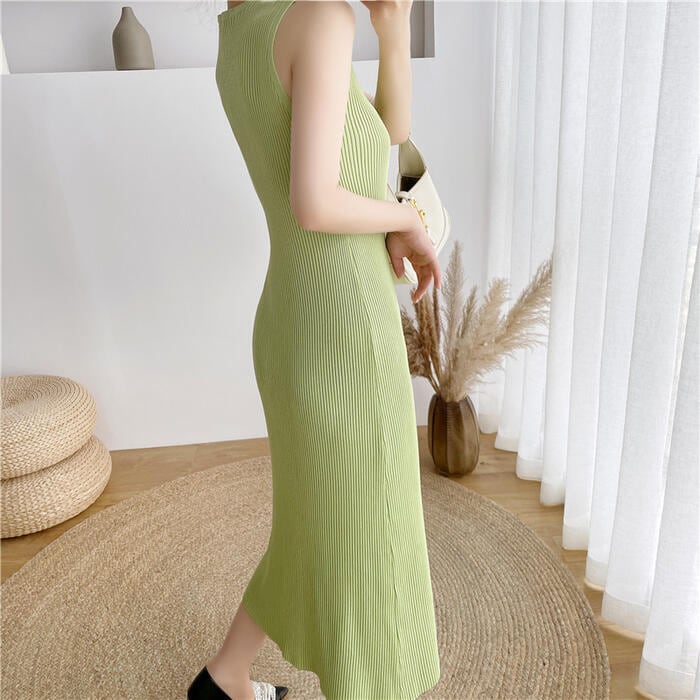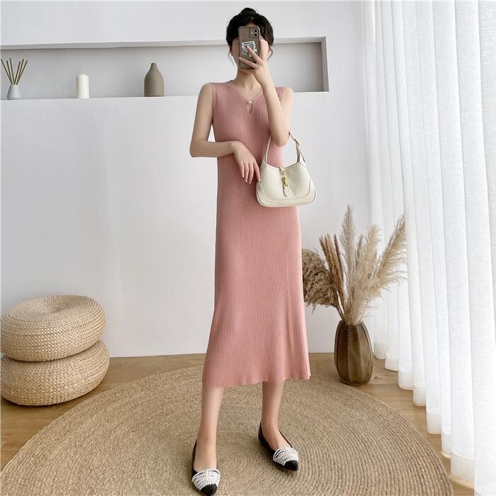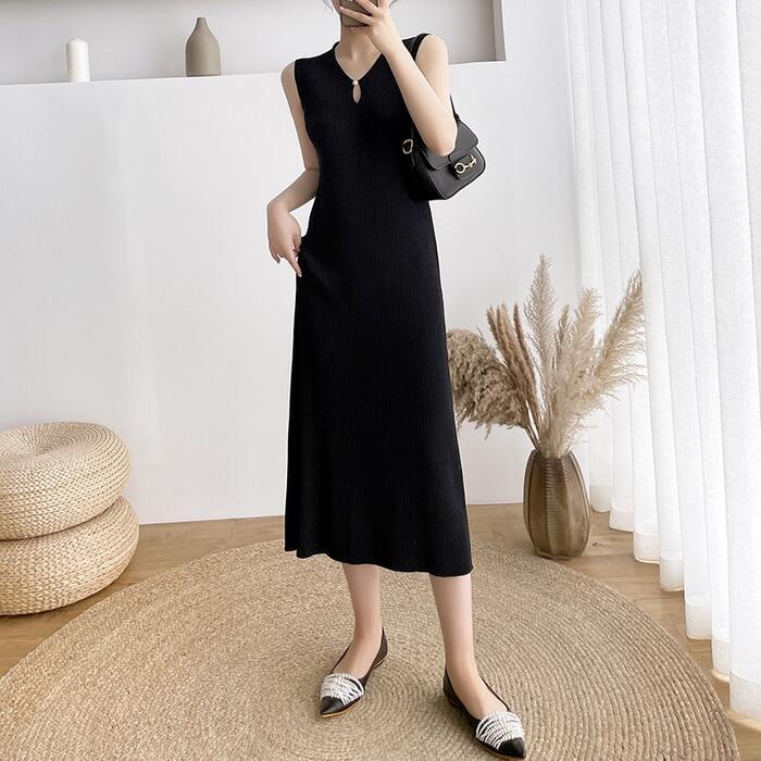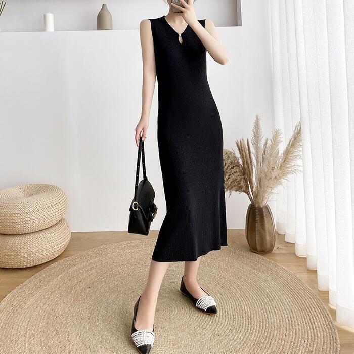全4色 ワンピース ロングワンピ ニット 涙開き エレガント ノースリーブ レディース きれいめ カジュアル ミモレ丈 おしゃれ 大人 可愛い ワンピ ドレス タイト スリム グリーン 緑 ベージュ ピンク ブラック 黒 春 秋 夏 20代 30代 40代 50代