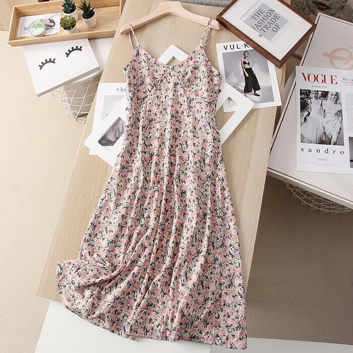 小花柄がレトロ可愛いキャミワンピース。