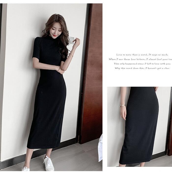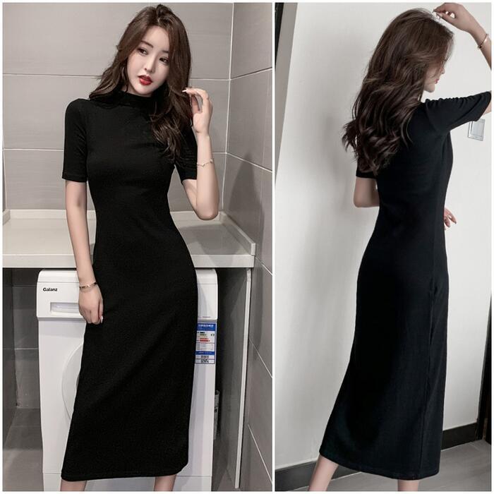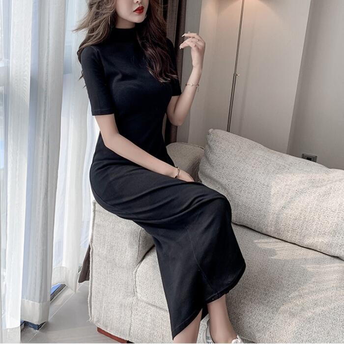 全7色 大きいサイズ タイト ワンピース ロングワンピ Tシャツワンピ 袖あり モックネック レディース 半袖 きれいめ カジュアル ミモレ丈 おしゃれ 大人 可愛い ワンピ ドレス ブラック 黒 ホワイト 白 レッド ブラウン ブルー 青 ベージュ グレー 春 秋 夏 20代 30代 40代 50代
