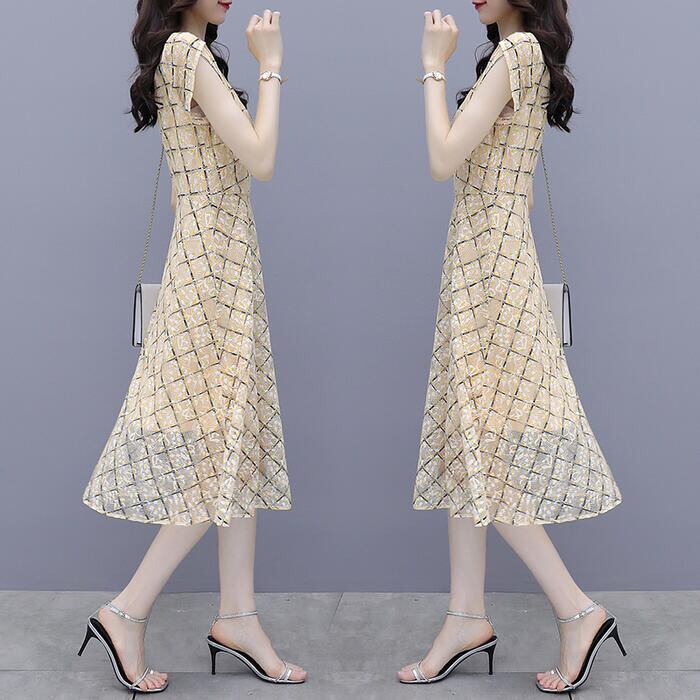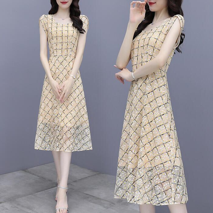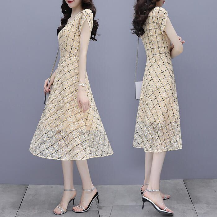 大きいサイズ ワンピース 花柄 レース ワンピ 袖あり 刺繍 レディース 半袖 エレガント きれいめ カジュアル ミモレ丈 大人 可愛い ワンピ ドレス ハイウエスト Aライン 透け感 フェミニン 通勤 お呼ばれ イエロー 春 秋 夏 20代 30代 40代 50代