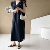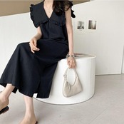 ビッグカラーが目を惹くノースリーブワンピース。