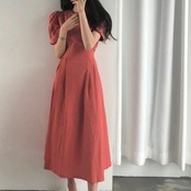 ふんわりパワーショルダーがトレンド感のあるロングワンピース。
