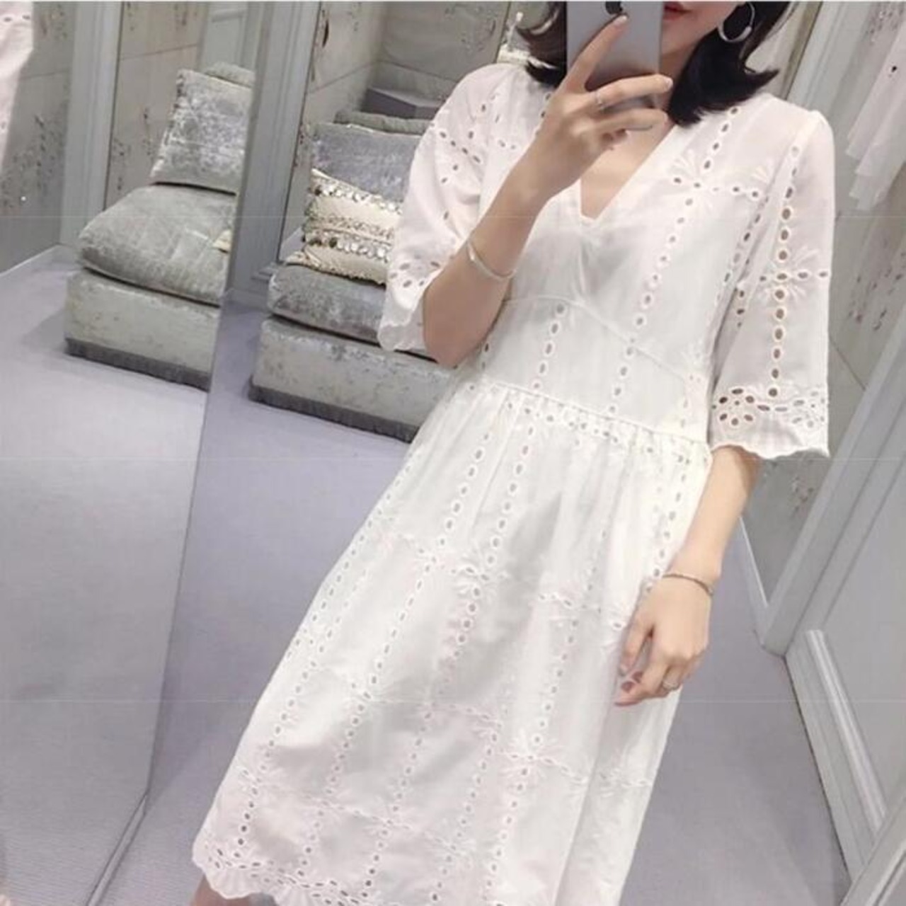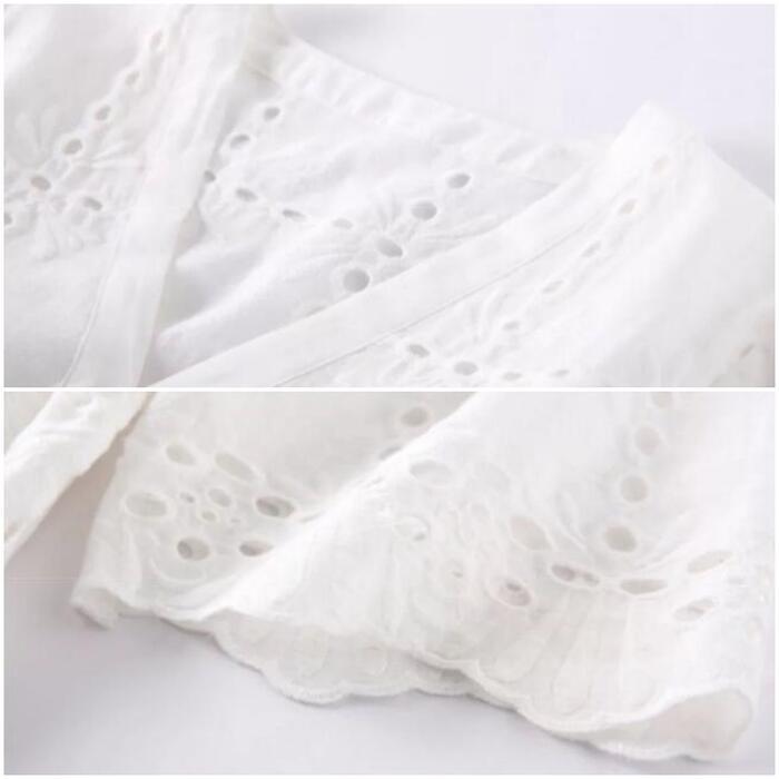 カットワークレースが可愛いナチュラルなワンピース。