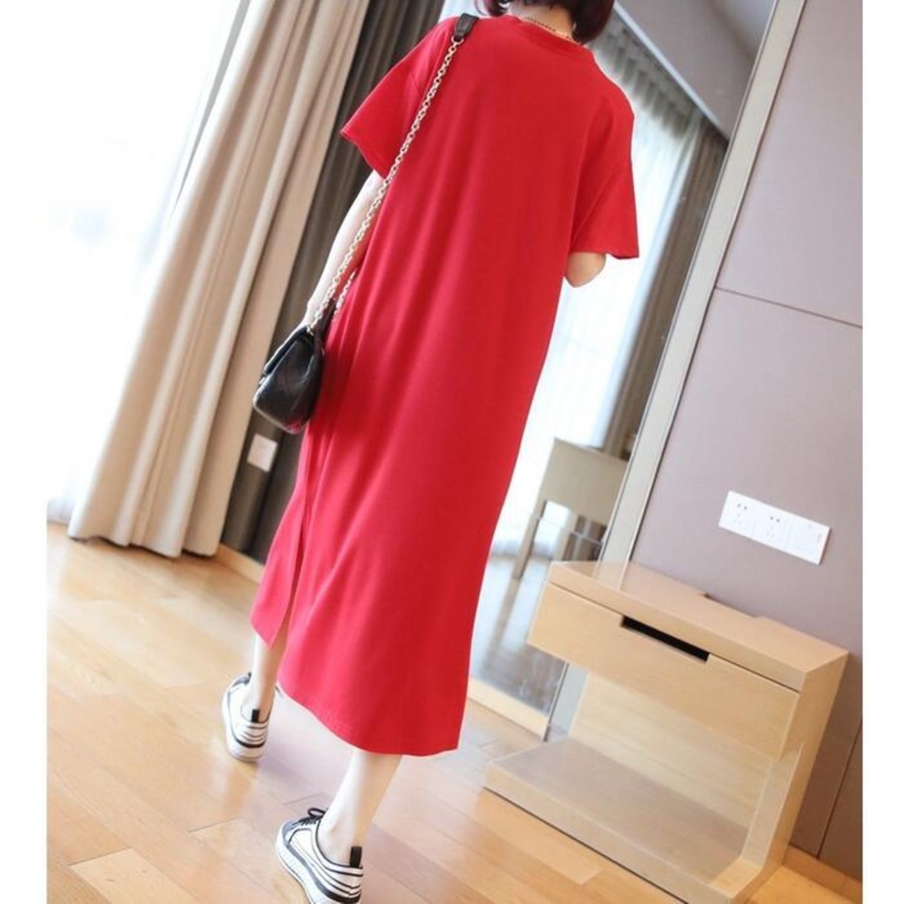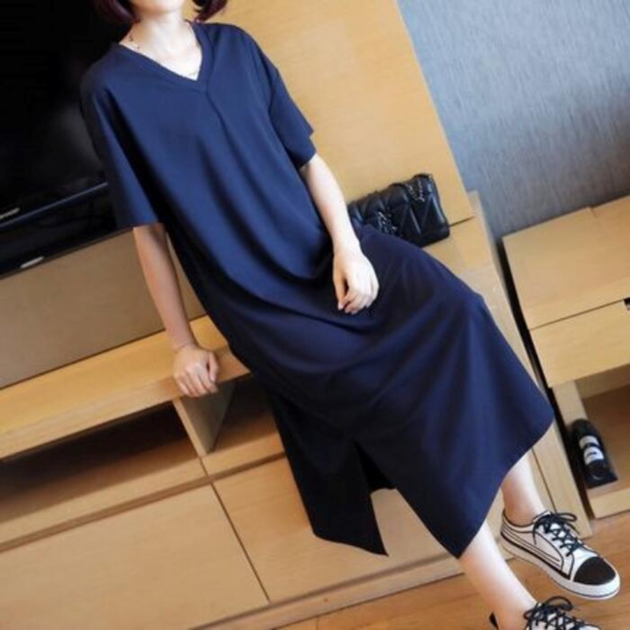 ドロップショルダーとスリットで抜け感を演出。