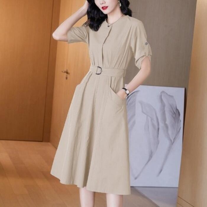 上品なAラインシルエットのベルトワンピース。