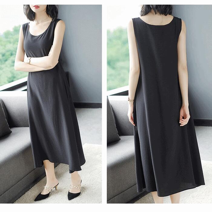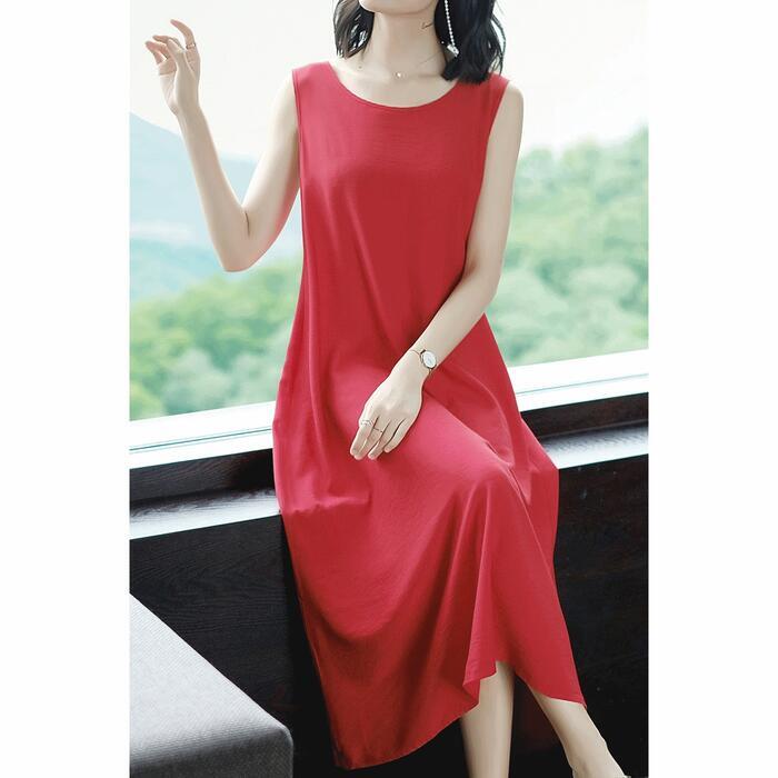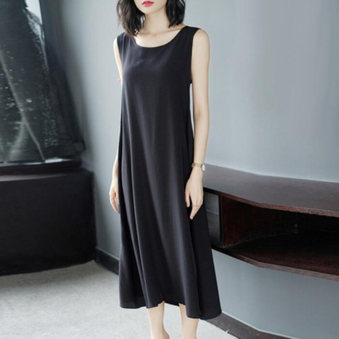 柔らかく滑らかな着心地のノースリーブワンピース。
