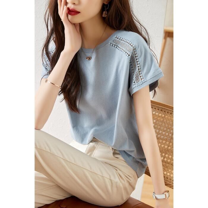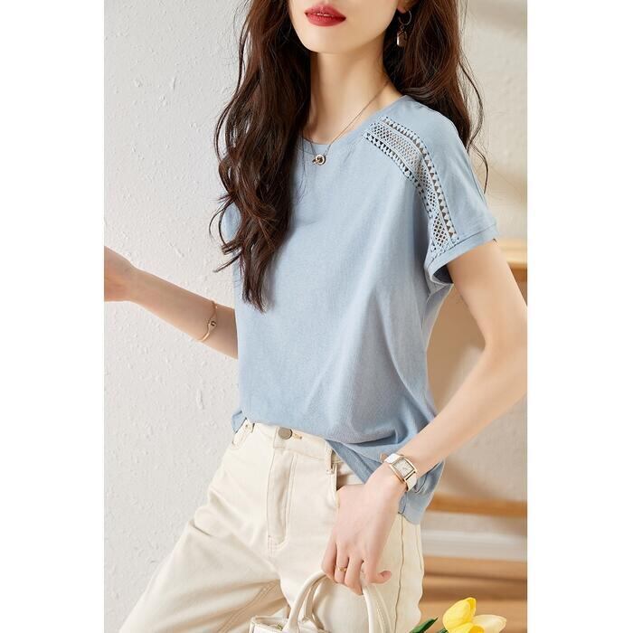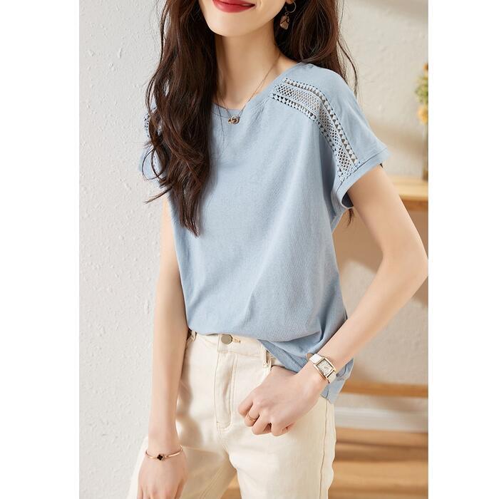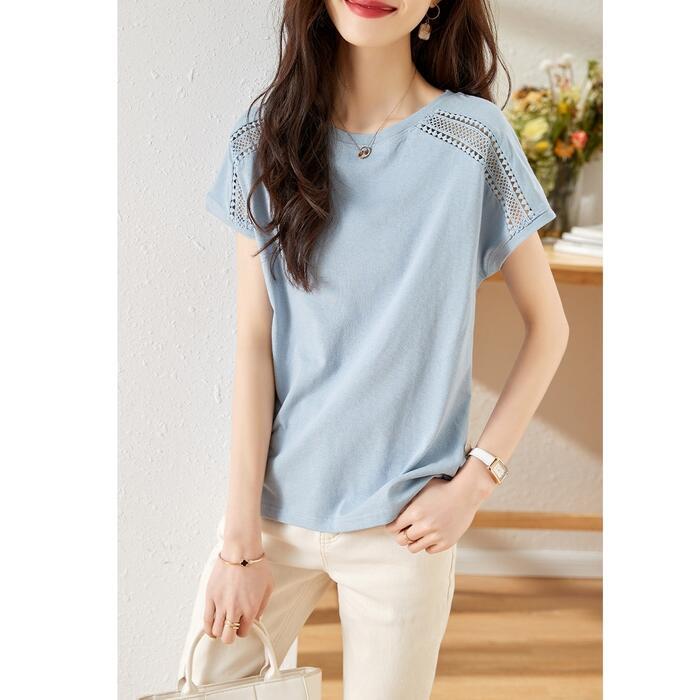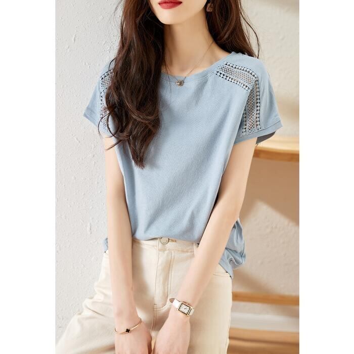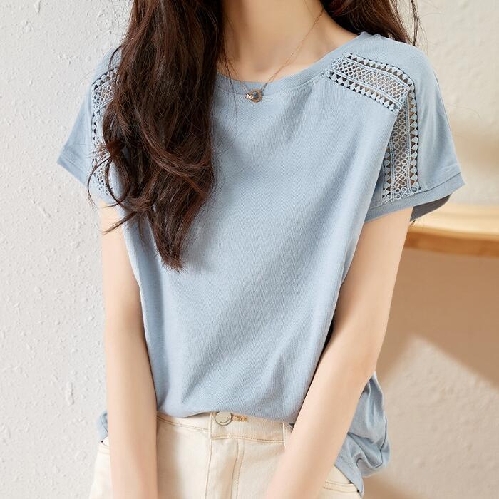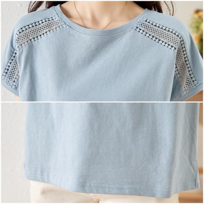 ショルダー部分のレースが可愛い半袖カットソー。