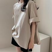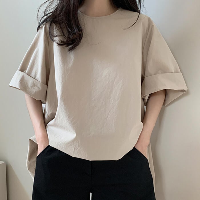 オーバーサイズのゆるっと感が可愛い五分袖トップス。
