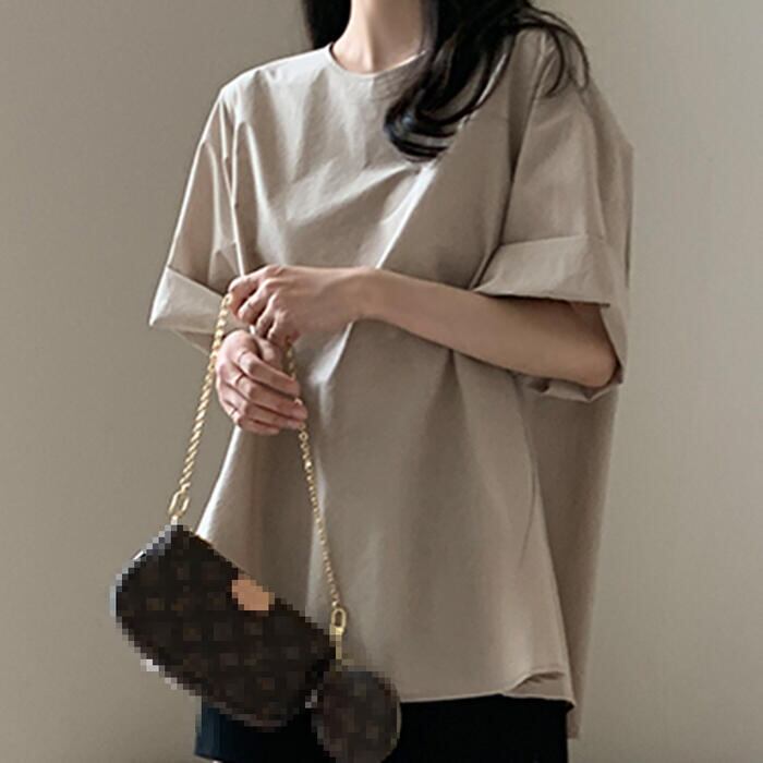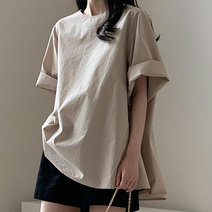 トップス Tシャツ ブラウス プルオーバー オーバーサイズ レディース 半袖 きれいめ カジュアル おしゃれ 大人 可愛い フェミニン ビッグシルエット ゆったり 体型カバー クルーネック シンプル ベージュ 春 夏 秋 20代 30代 40代 50代