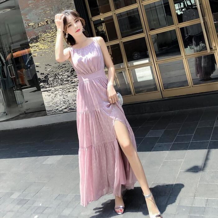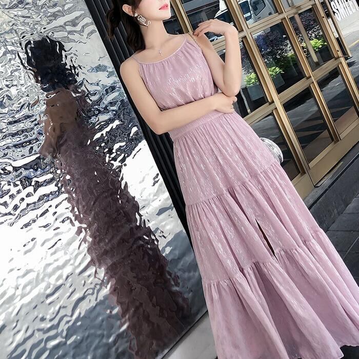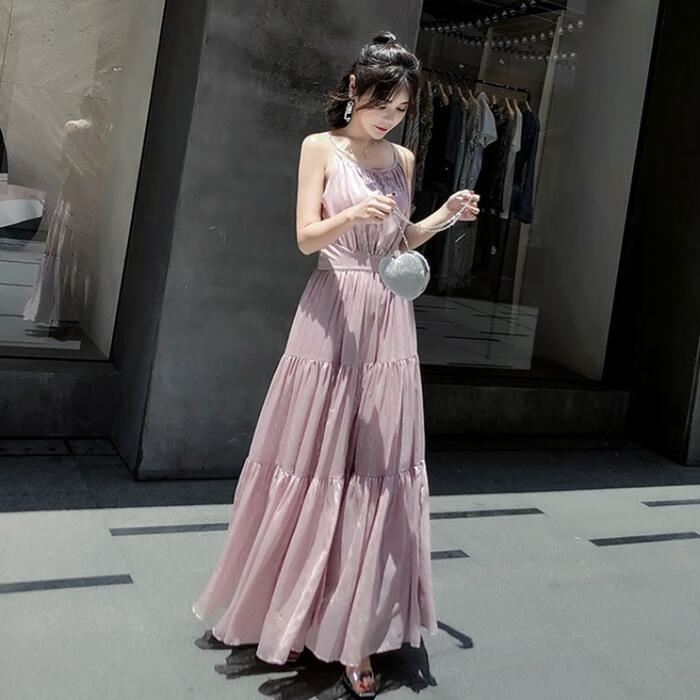 全2種 大きいサイズティアード ワンピース ロングワンピ レディース きれいめ カジュアル ロング丈 ノースリーブ おしゃれ 大人 可愛い フレア ワンピ ドレス エレガント フェミニン 体型カバー お呼ばれ オケージョン スリット ピンク 春 秋 夏 20代 30代 40代 50代