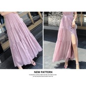 深めに入ったスリットが大人っぽエレガントな着こなしに。