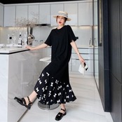 レイヤード風の切り替えデザインが可愛いワンピース。