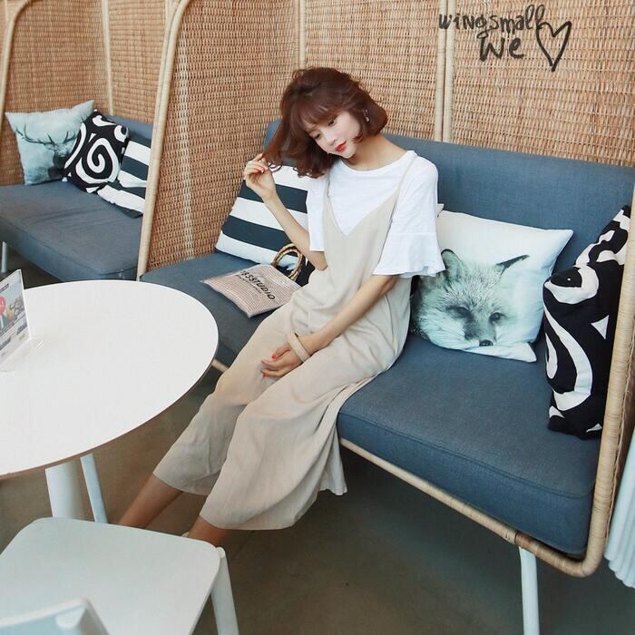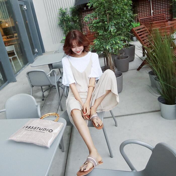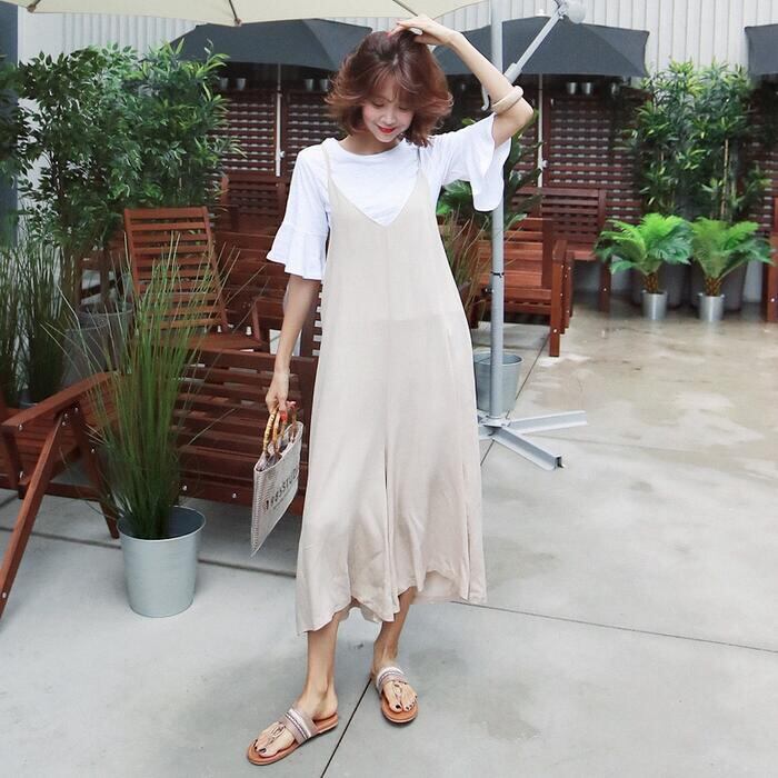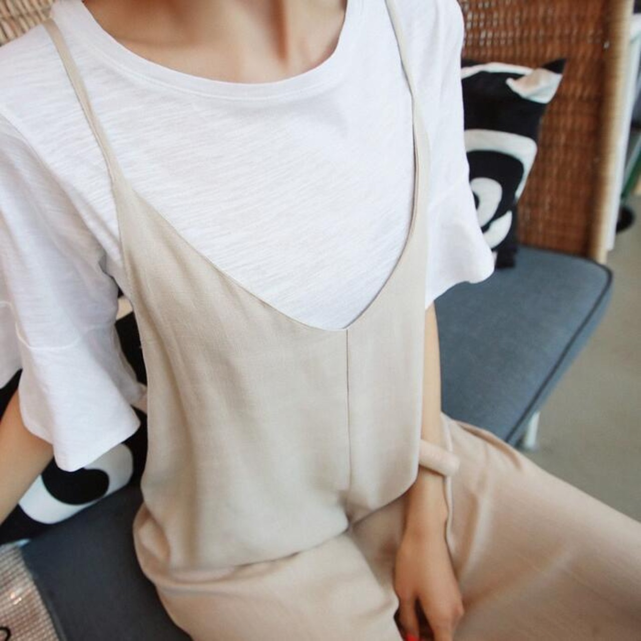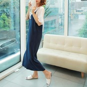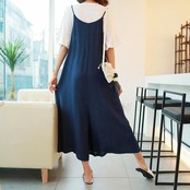 細いストラップとVネックラインがフェミニンなサロペットパンツ。