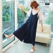 全2色 大きいサイズサロペットパンツ オーバーオール パンツ レディース きれいめ カジュアル おしゃれ ロング丈 かっこいい ワイドパンツ 大人 可愛い Vネック シンプル レイヤード ゆったり ネイビー ベージュ 春 夏 秋 20代 30代 40代 50代