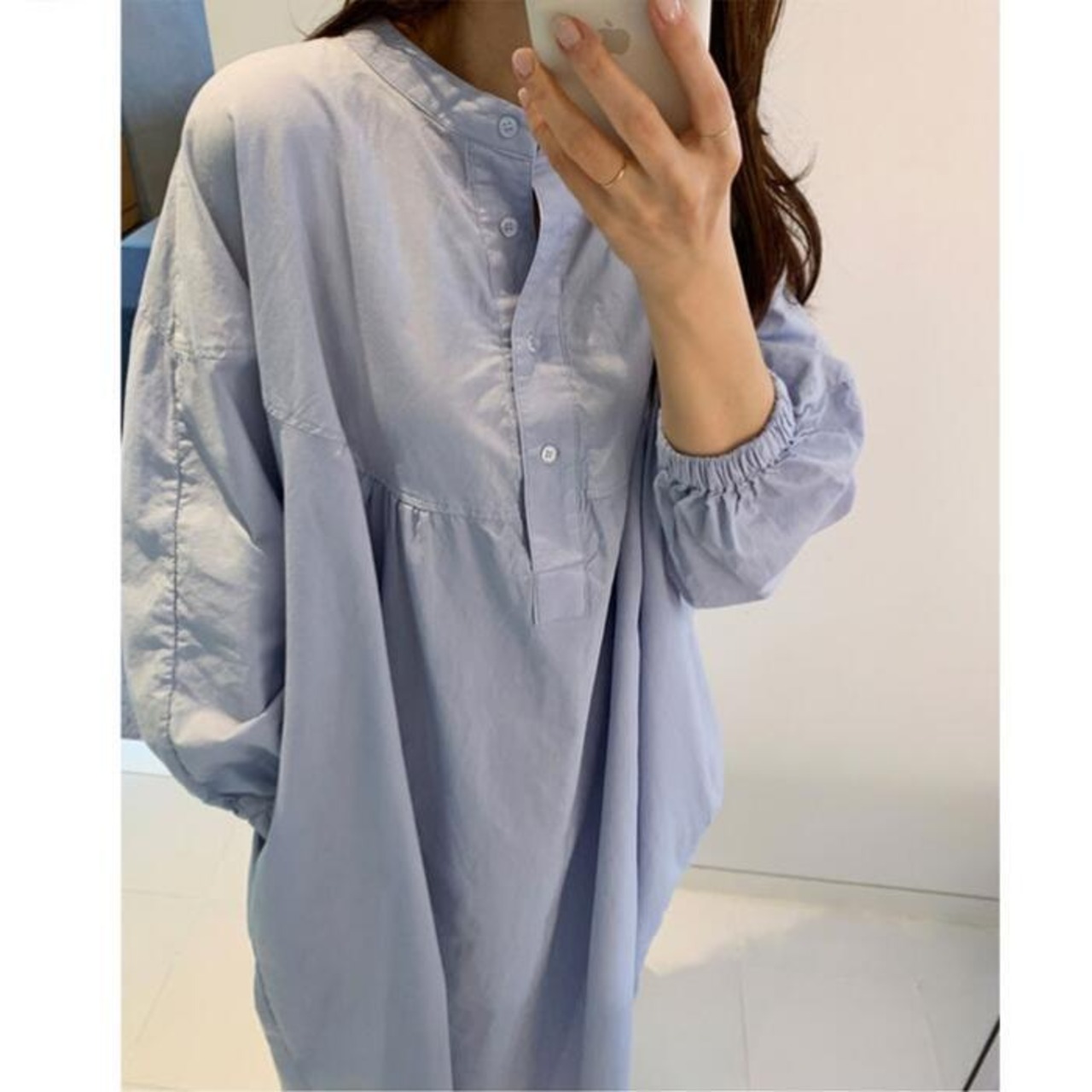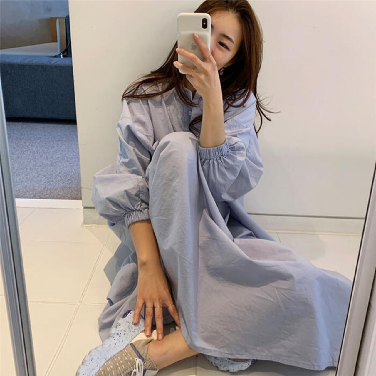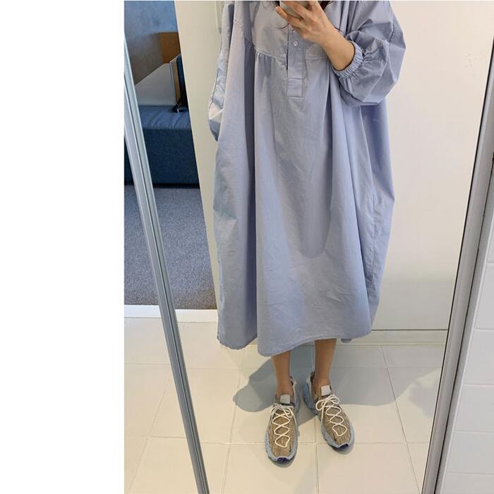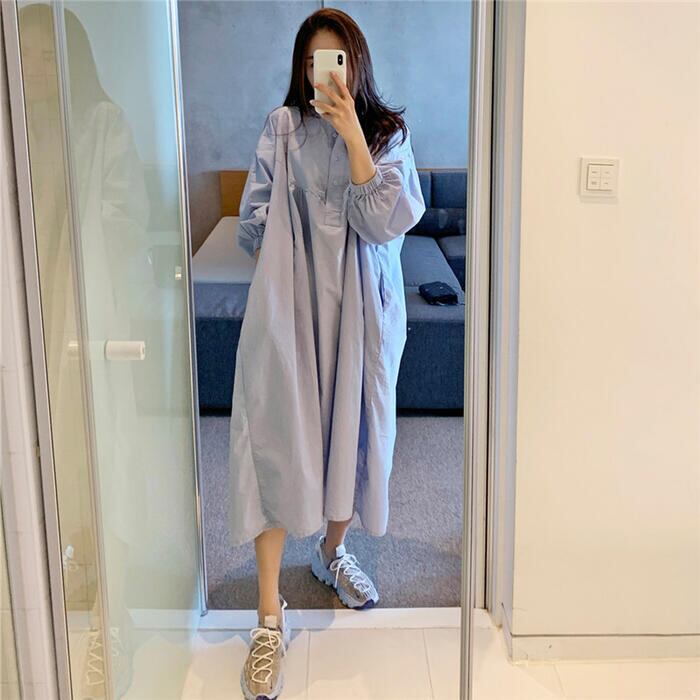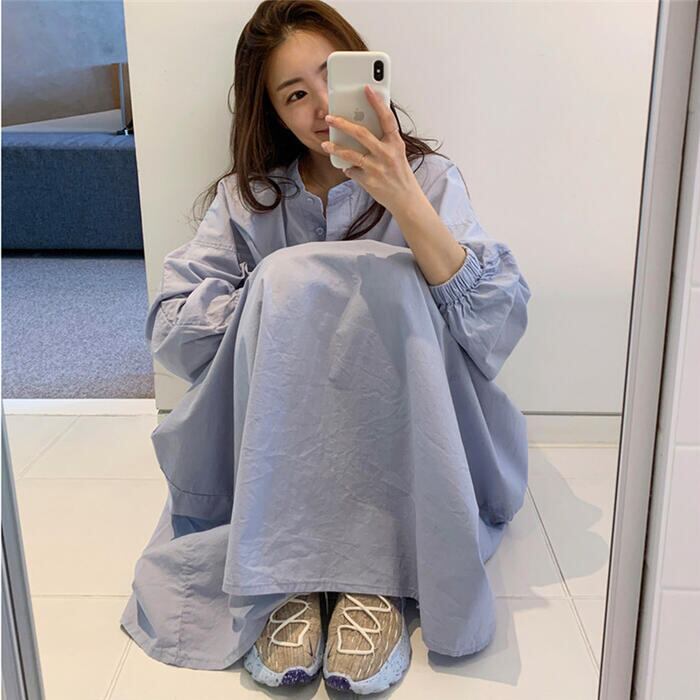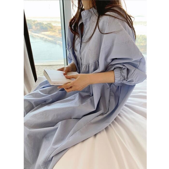 オーバーサイズが可愛い長袖シャツワンピース。