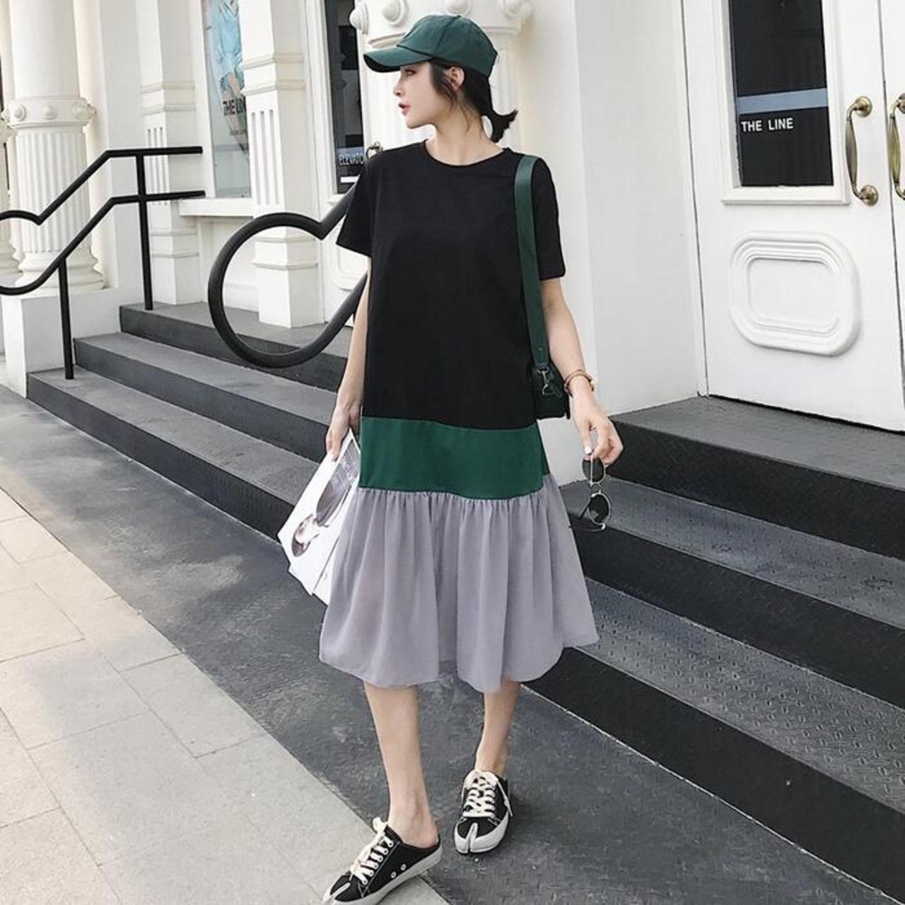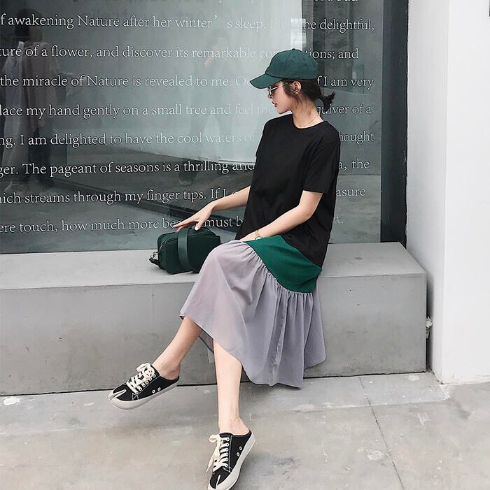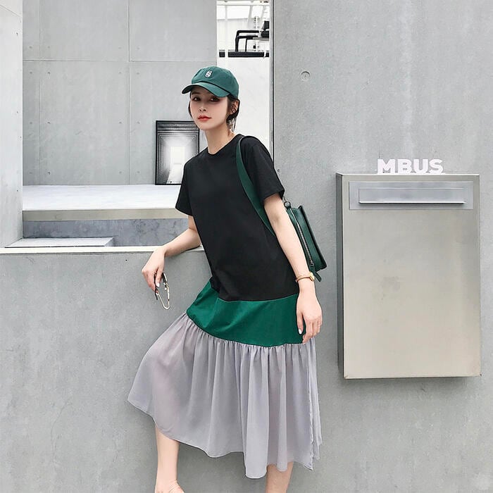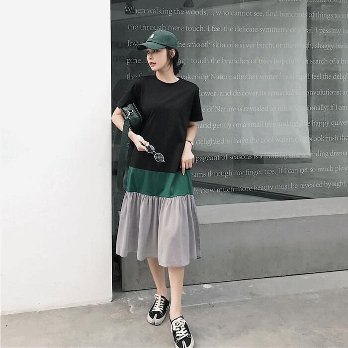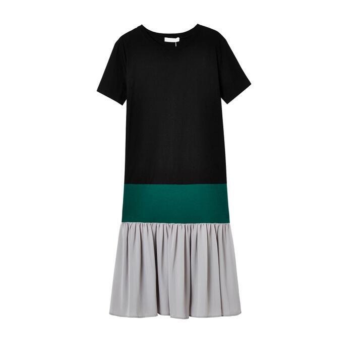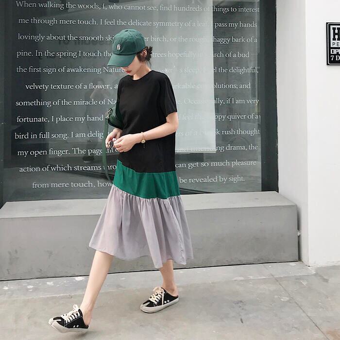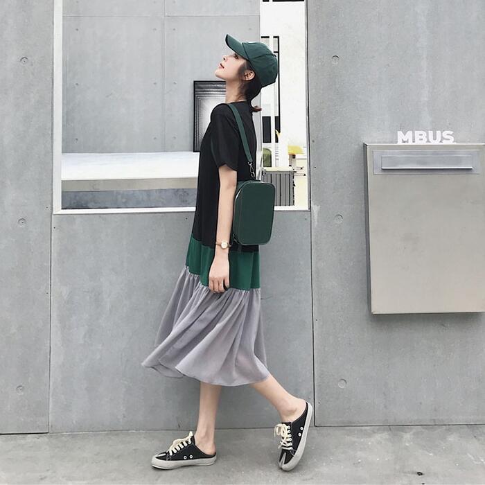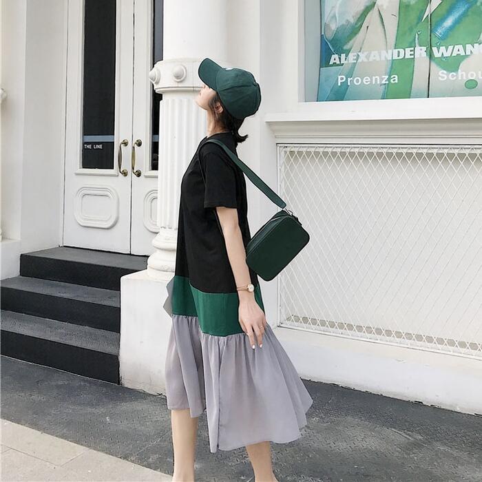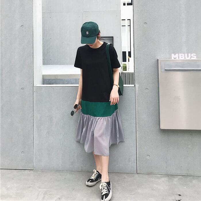 大きいサイズワンピース ロングワンピ 袖あり レディース きれいめ カジュアル ミモレ丈 半袖 切り替え マルチカラー おしゃれ 大人 可愛い ワンピ ドレス フェミニン ゆったり 体型カバー ブラック 黒 春 秋 夏 20代 30代 40代 50代