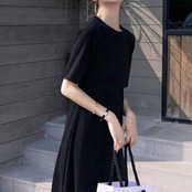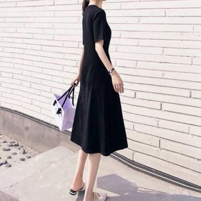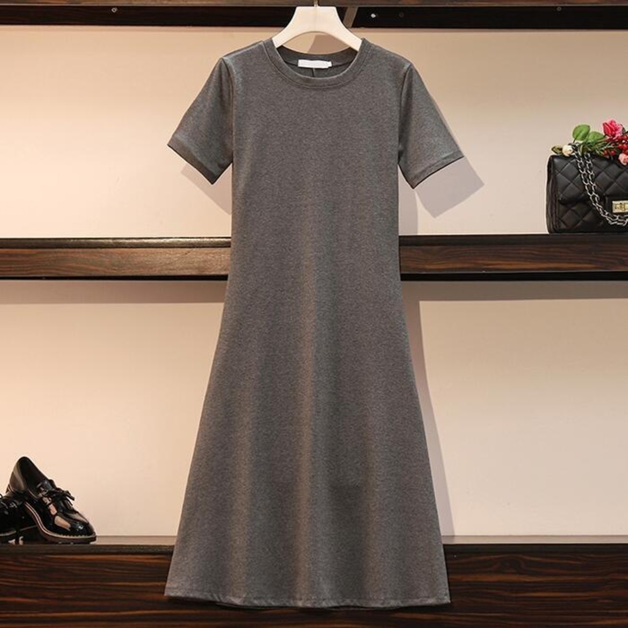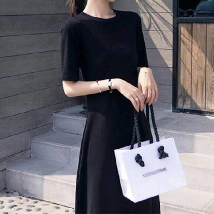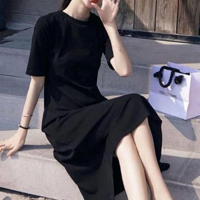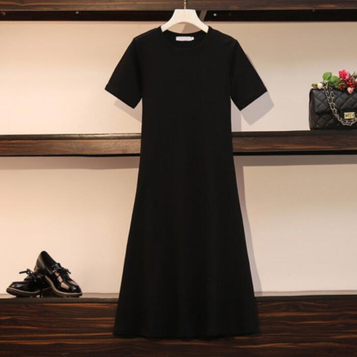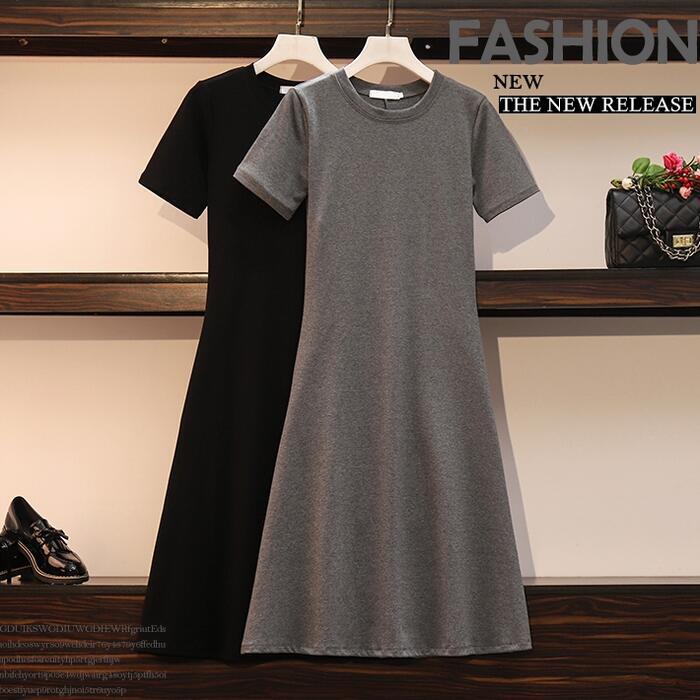 全2色 大きいサイズワンピース ロングワンピ 袖あり Tシャツワンピ レディース きれいめ カジュアル ミモレ丈 半袖 おしゃれ 大人 可愛い ワンピ ドレス フェミニン クルーネック Aライン ゆったり 体型カバー グレー ブラック 黒 春 秋 夏 20代 30代 40代 50代