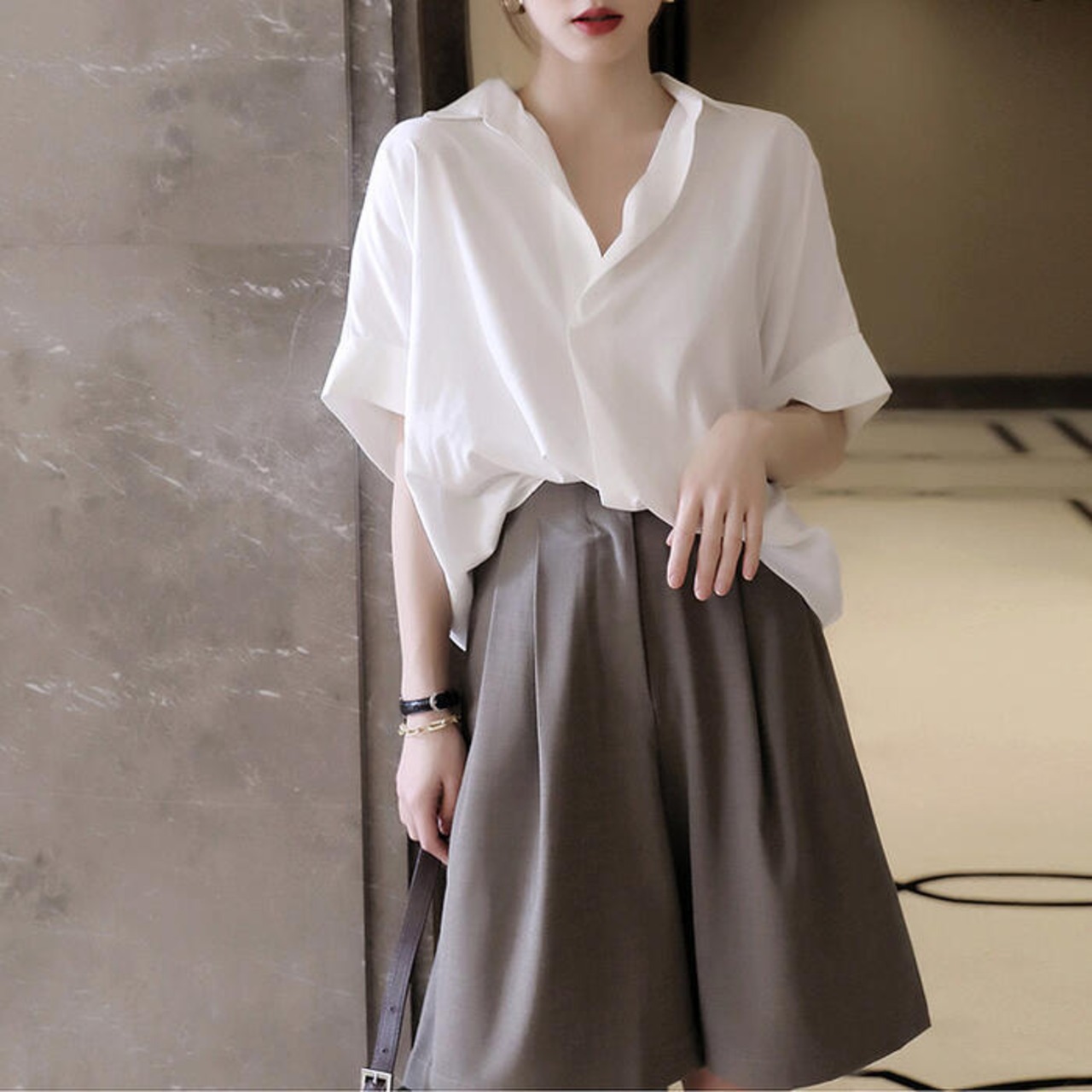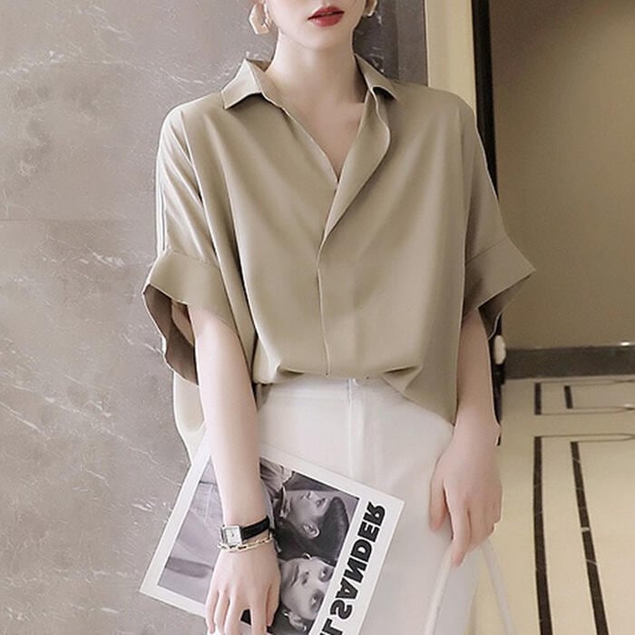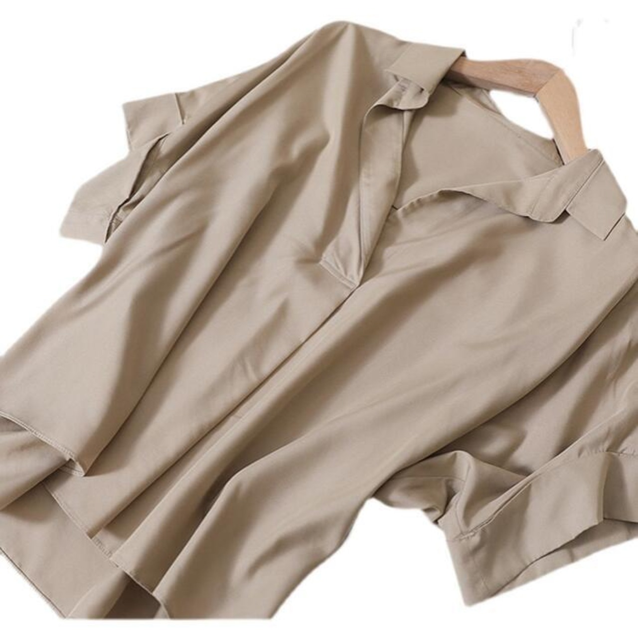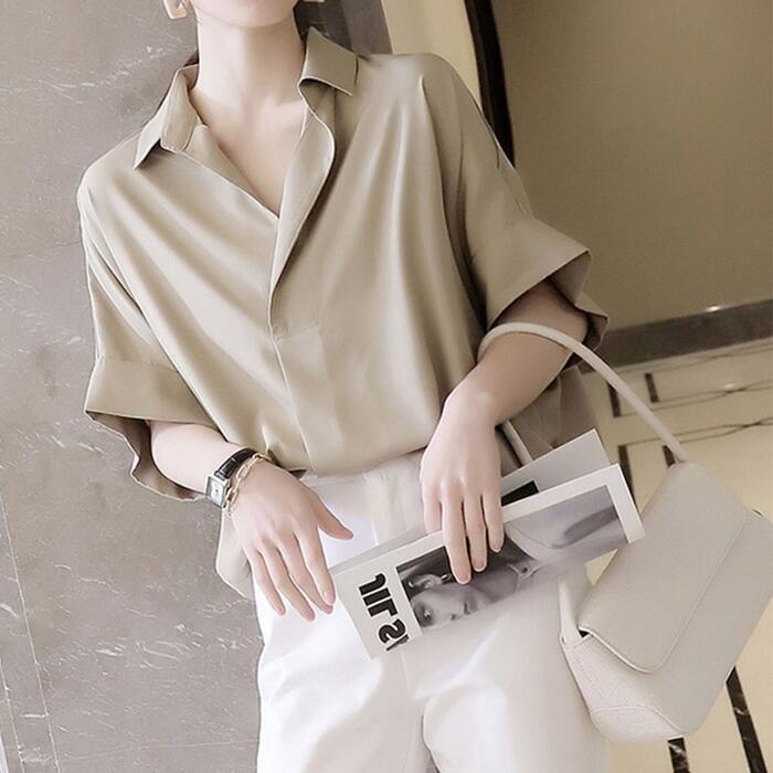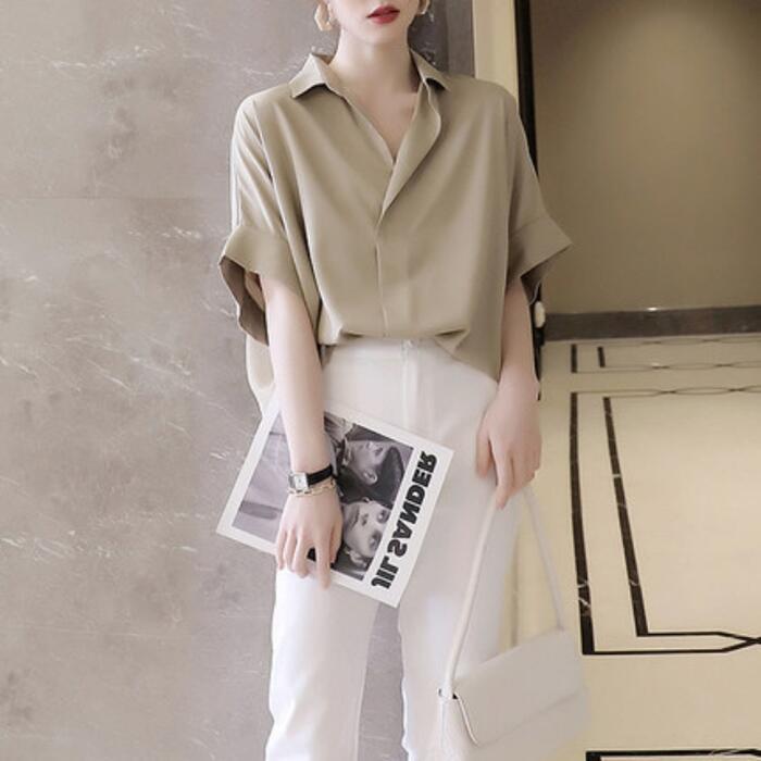 全2色 トップス ブラウス シャツ レディース 半袖 エレガント きれいめ カジュアル 大人 可愛い おしゃれ シンプル オーバーサイズ ゆったり 体型カバー オフィス 通勤 フェミニン ベージュ ホワイト 白 春 夏 秋 20代 30代 40代 50代