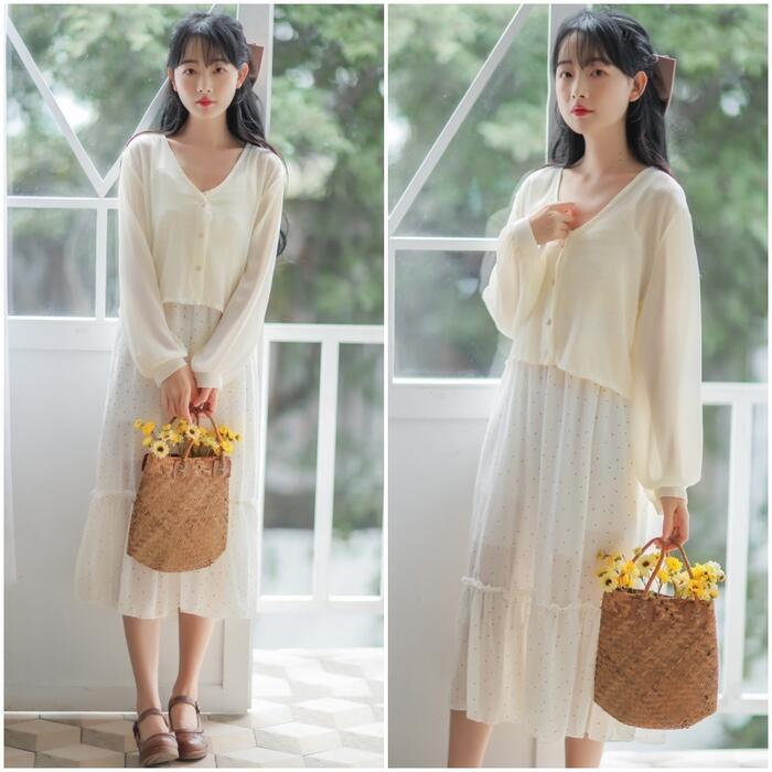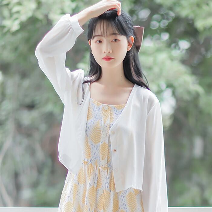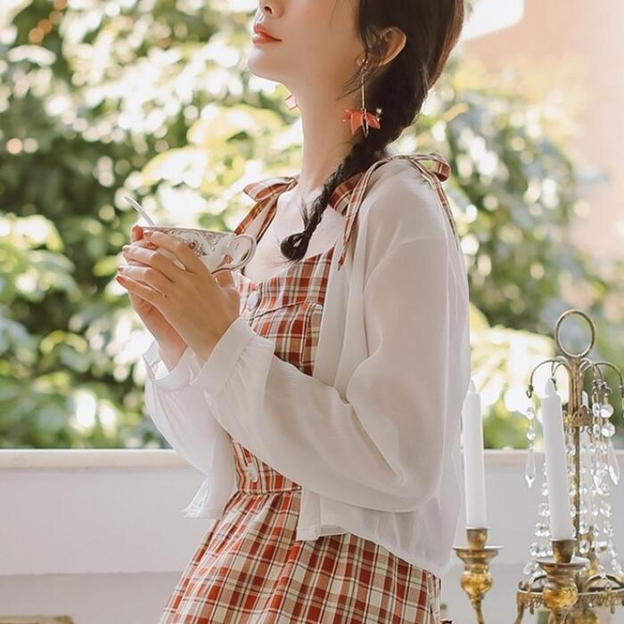 全2色 大きいサイズトップス カーディガン ブラウス シャツ レディース 長袖 エレガント きれいめ カジュアル 大人 可愛い おしゃれ シンプル クロップド丈 シアー 透け感 体型カバー フェミニン 羽織 ベージュ ホワイト 白 春 夏 秋 20代 30代 40代 50代