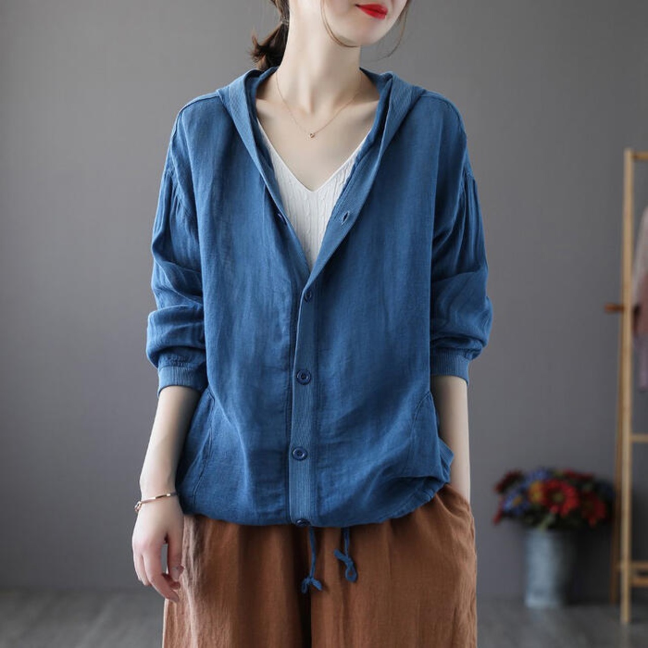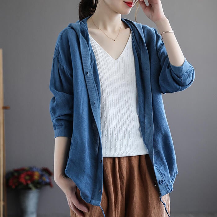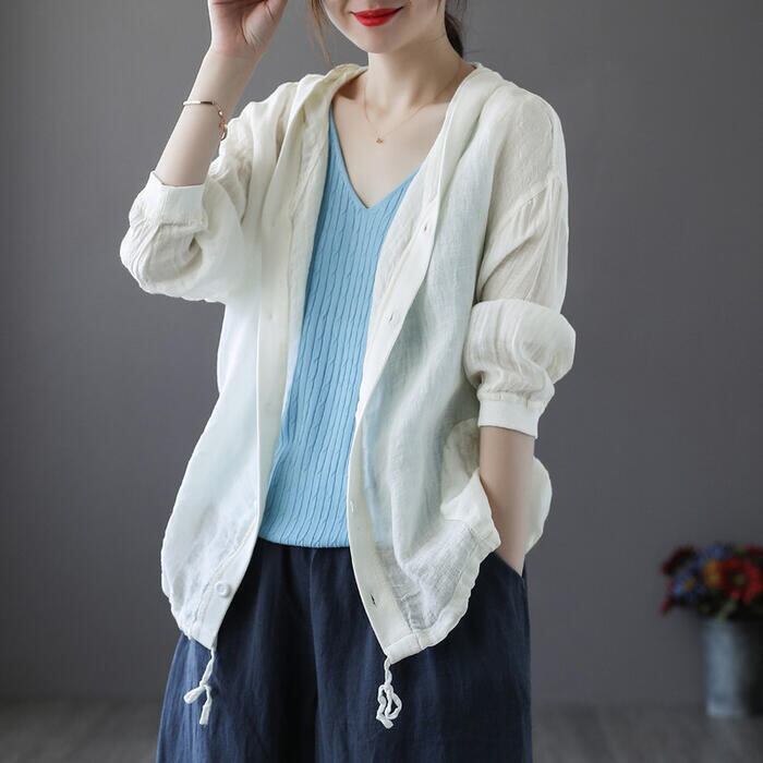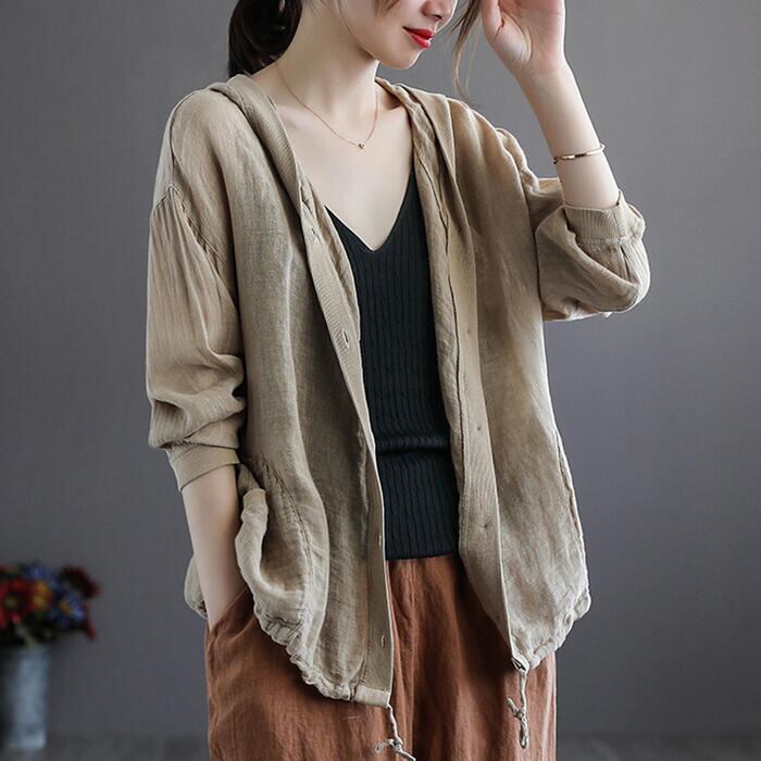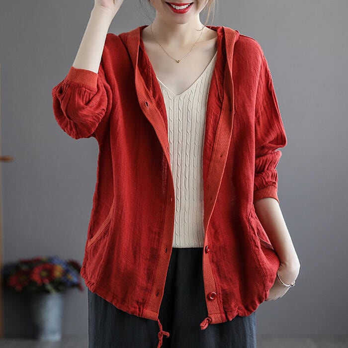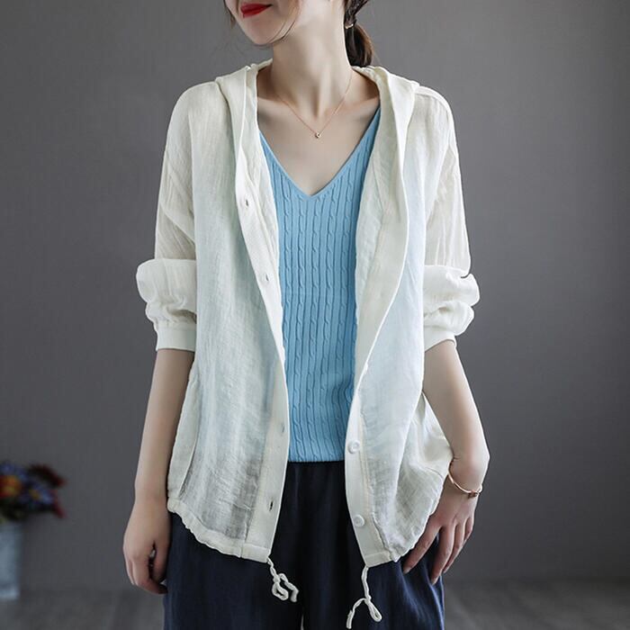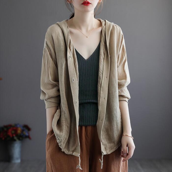 全4色 大きいサイズ麻 リネン混 トップス レディース カーディガン フード ジャケット 羽織 きれいめ カジュアル おしゃれ 薄手 ナチュラル 長袖 涼しい リラックス シンプル レッド ベージュ ホワイト 白 ブルー 青 春 夏 秋 20代 30代 40代 50代
