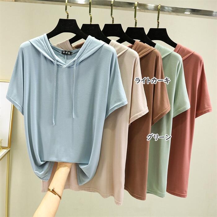 全12色 大きいサイズ オーバーサイズ ゆったりトップス Tシャツ カットソー パーカー プルオーバー レディース 半袖 きれいめ カジュアル 大人 可愛い おしゃれ シンプル 体型カバー ピンク ブルー ブラウン ベージュ グリーン ブラック 黒 グレー ホワイト 白 春 夏 秋 20代 30代 40代 50代