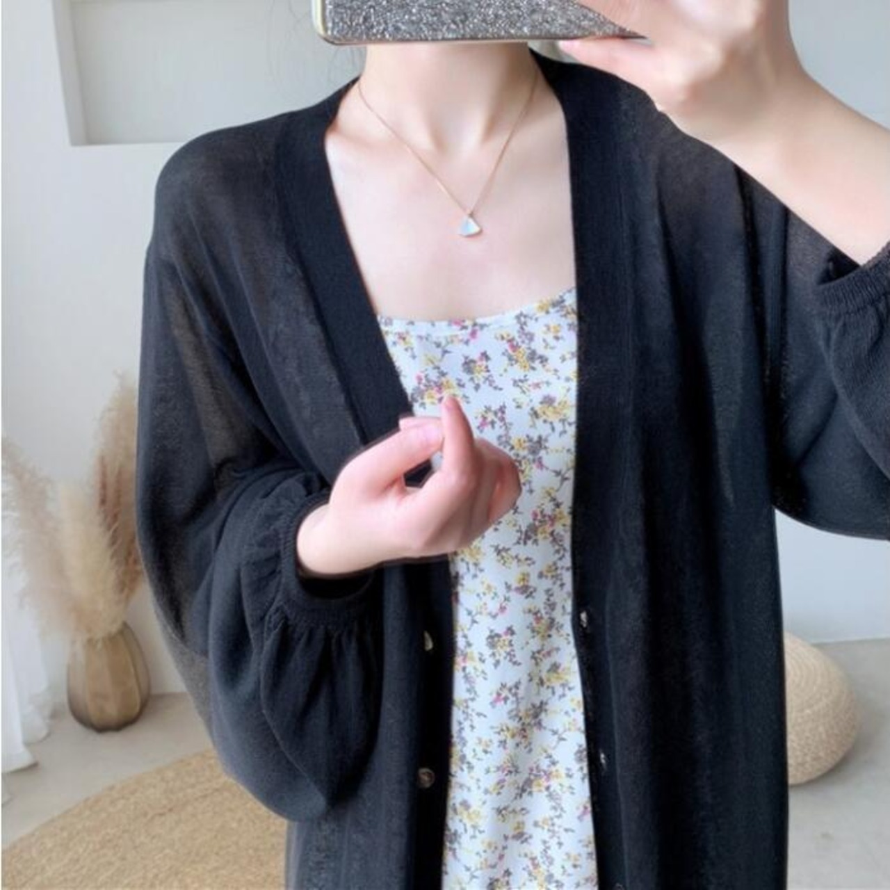 軽やかなシアー素材で仕立てたロング丈のカーディガン。