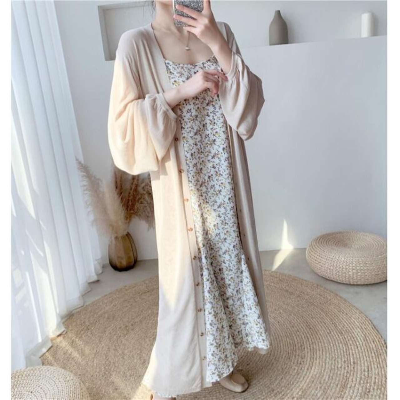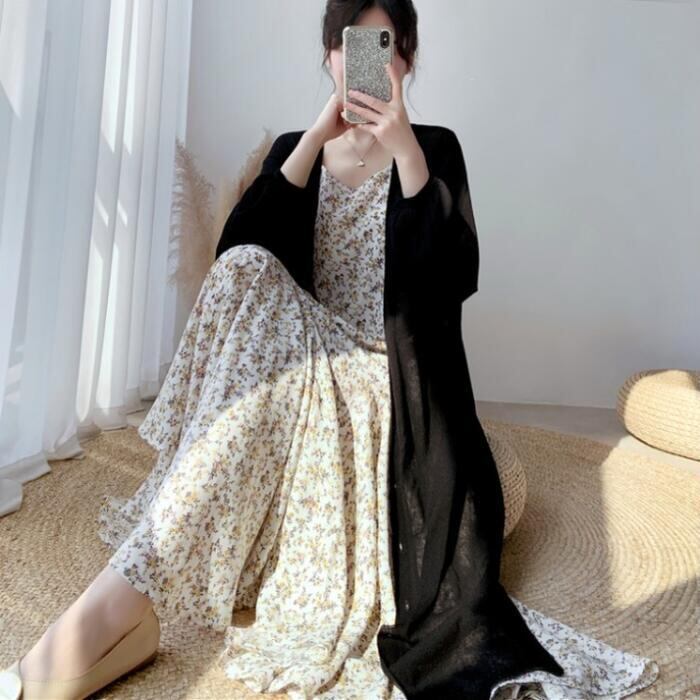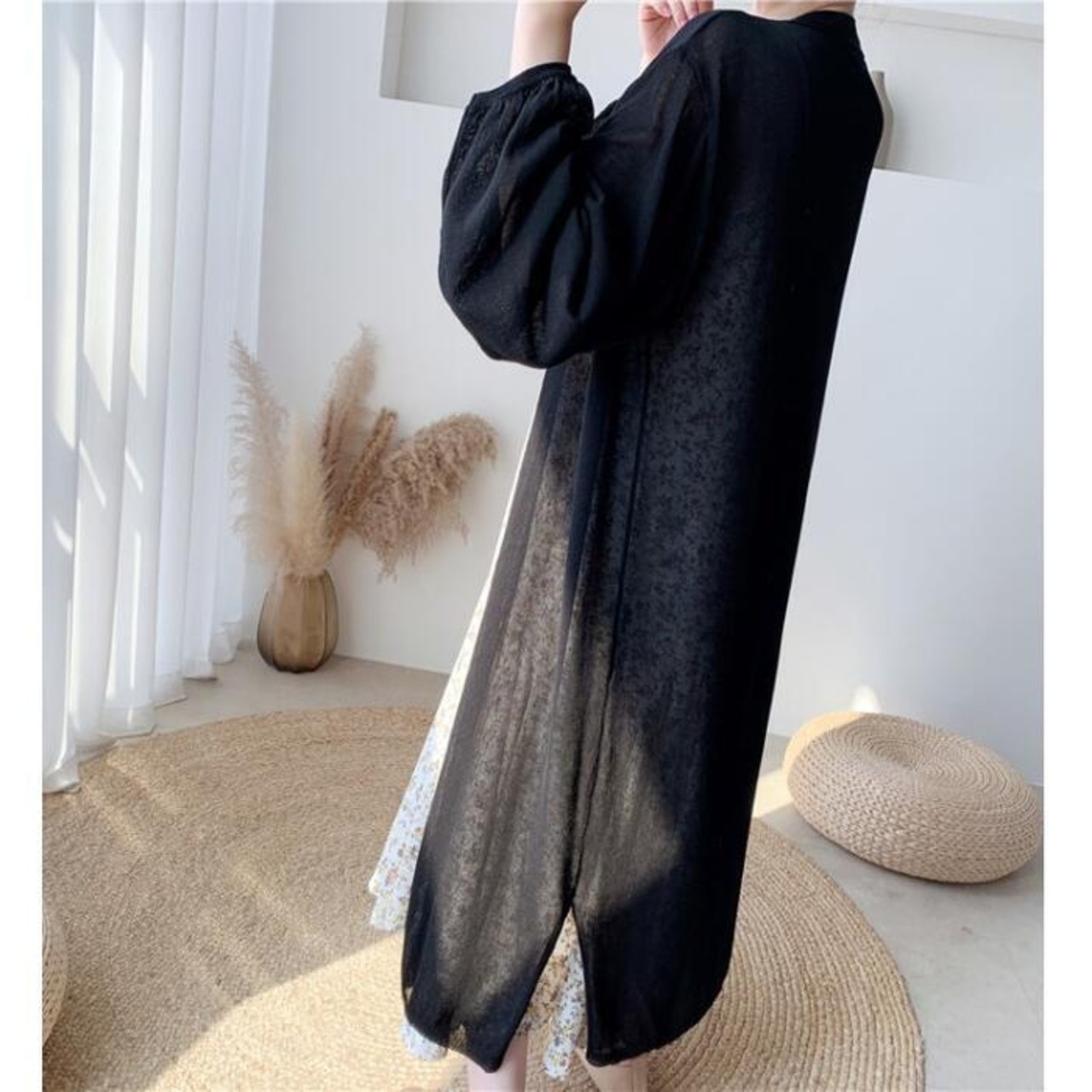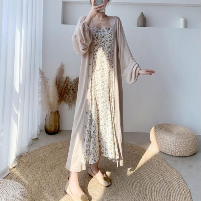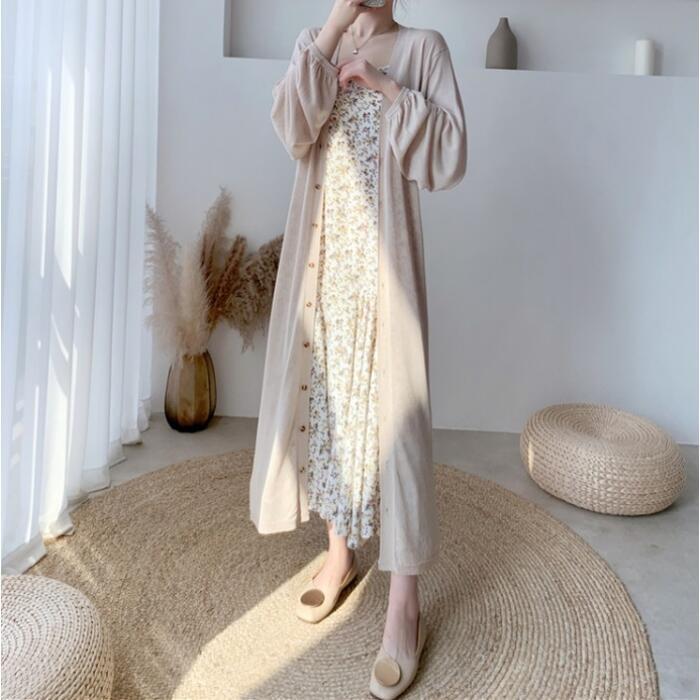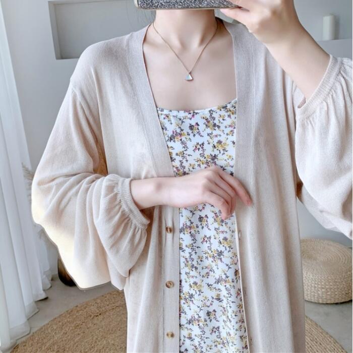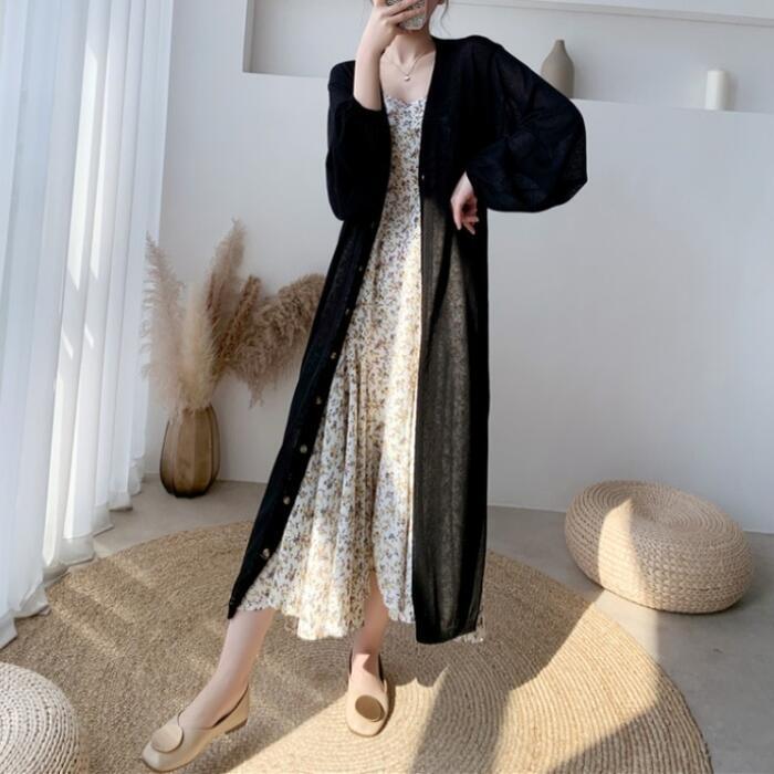 全2色 トップス カーディガン レディース 長袖 きれいめ カジュアル 大人 可愛い おしゃれ シンプル ゆったり ロング丈 体型カバー 羽織 薄手 涼しい ガウン 日焼け対策 フェミニン ベージュ ブラック 黒 春 夏 秋 20代 30代 40代 50代