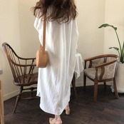 全4色 大きいサイズ麻 リネン混 ワンピース ロングワンピ レディース シャツワンピ 羽織り きれいめ カジュアル おしゃれ 薄手 ナチュラル 長袖 涼しい リラックス ゆったり 体型カバー シンプル ブルー ピンク ホワイト 白 ネイビー 春 夏 秋 20代 30代 40代 50代