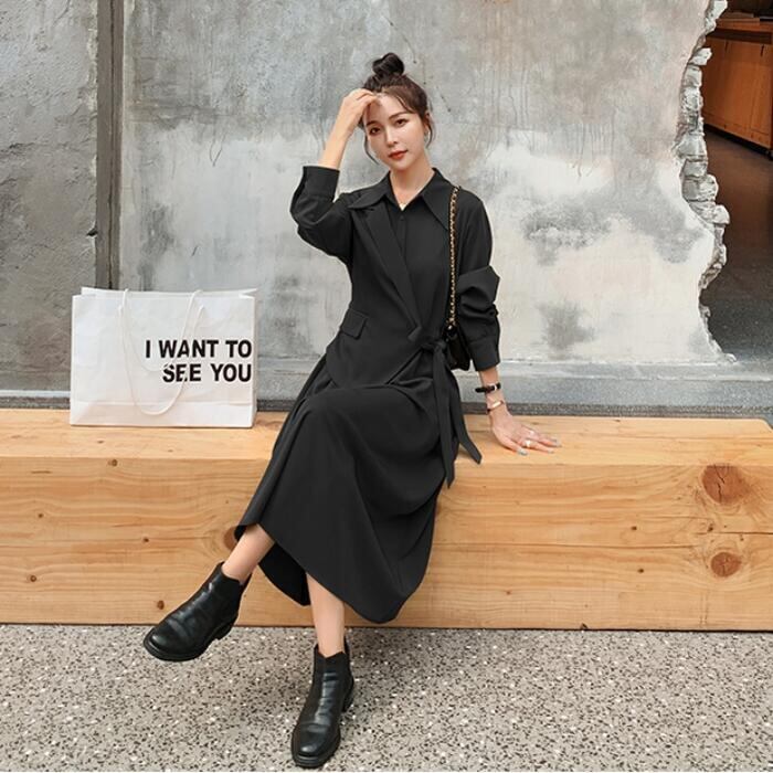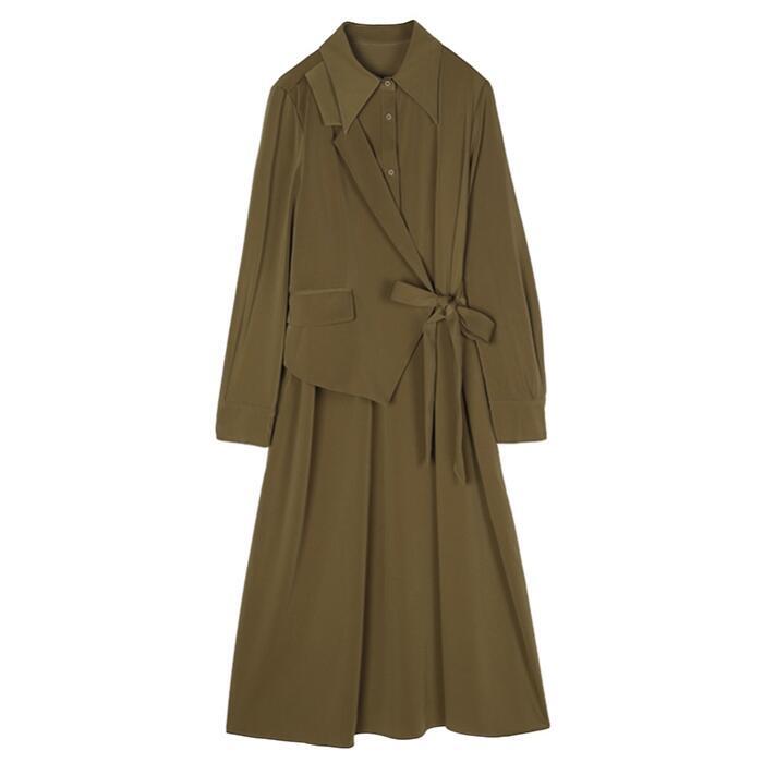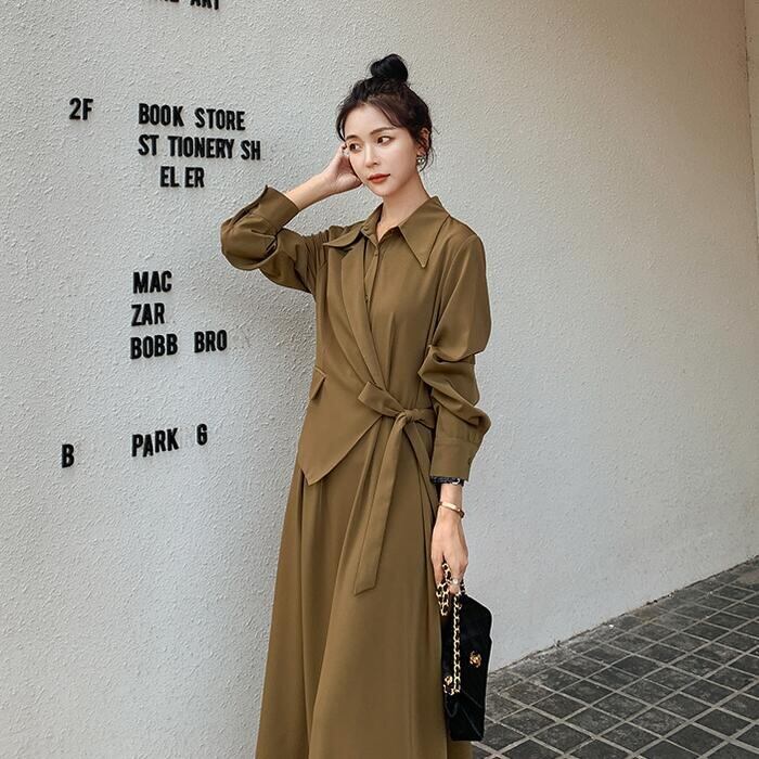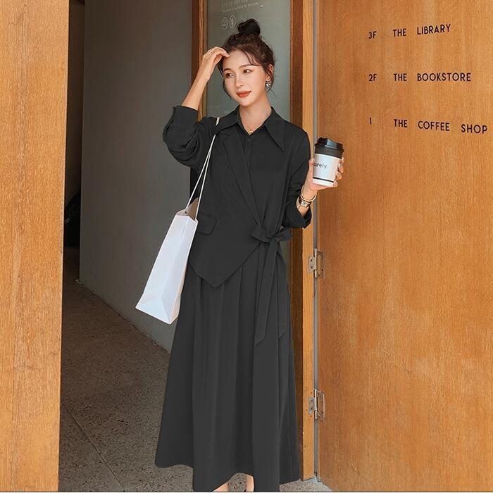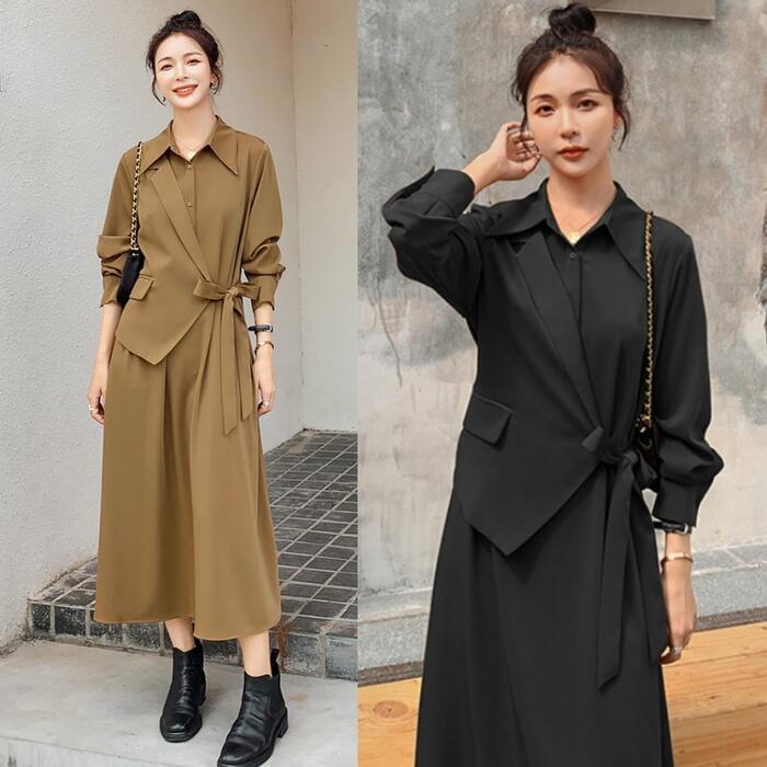 全2色 大きいサイズレイヤード風 ワンピース ロングワンピ 袖あり カシュクール レディース きれいめ カジュアル ミモレ丈 長袖 おしゃれ 大人 可愛い ワンピ ドレス フェミニン モード ブラウン ブラック 黒 春 秋 冬 20代 30代 40代 50代