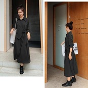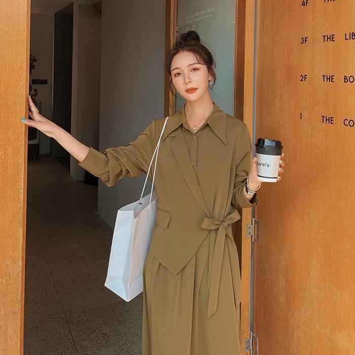 ジャケットを合わせたような技ありデザインのワンピース。