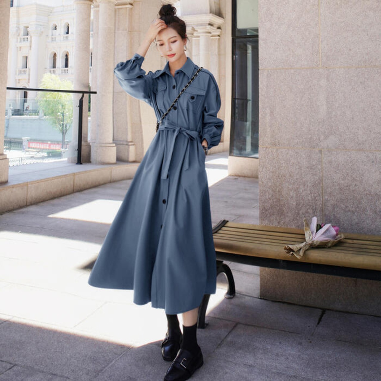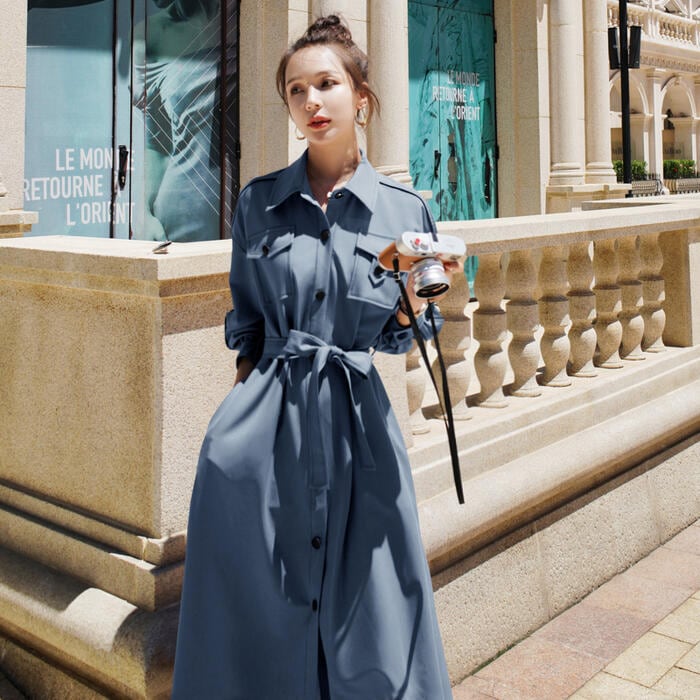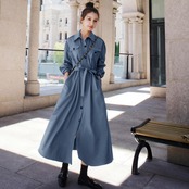 シンプルで着回しやすいロングシャツワンピース。