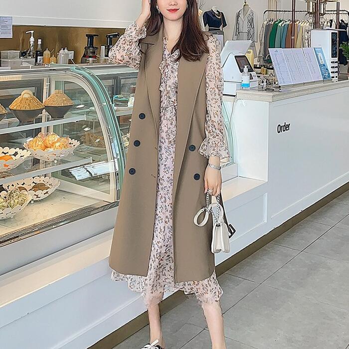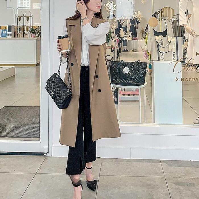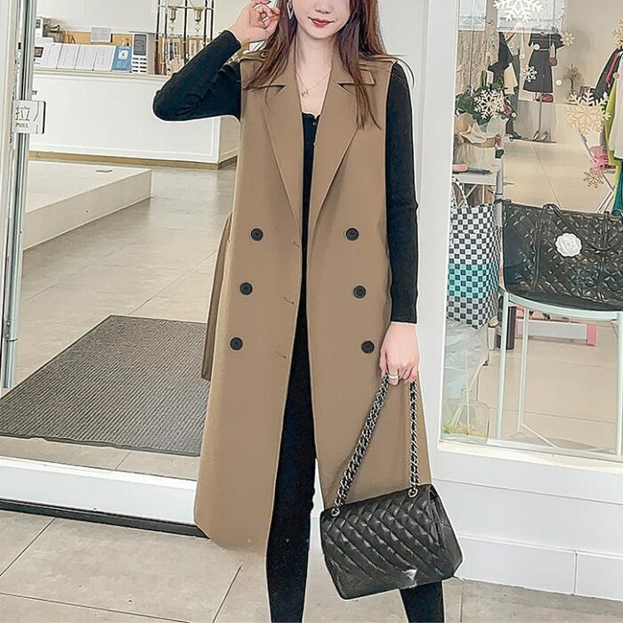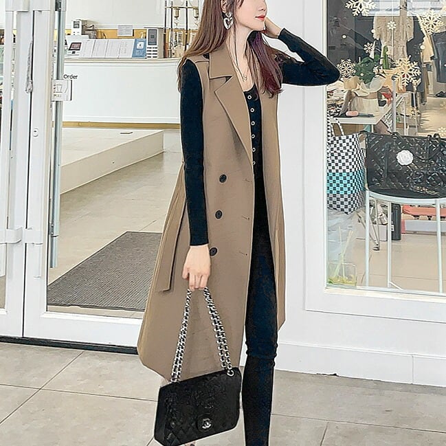 いつものスタイリングにさっと羽織れる、ノースリーブロングジャケット。