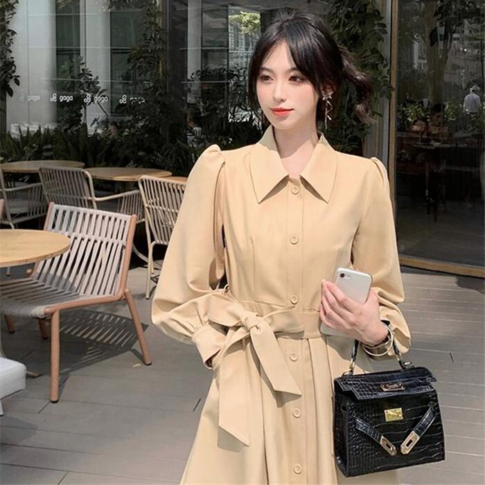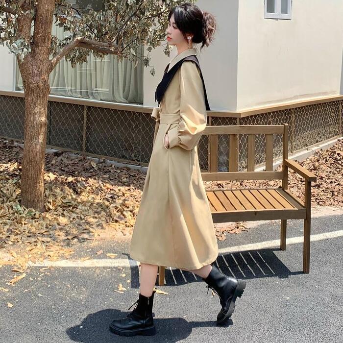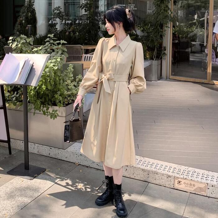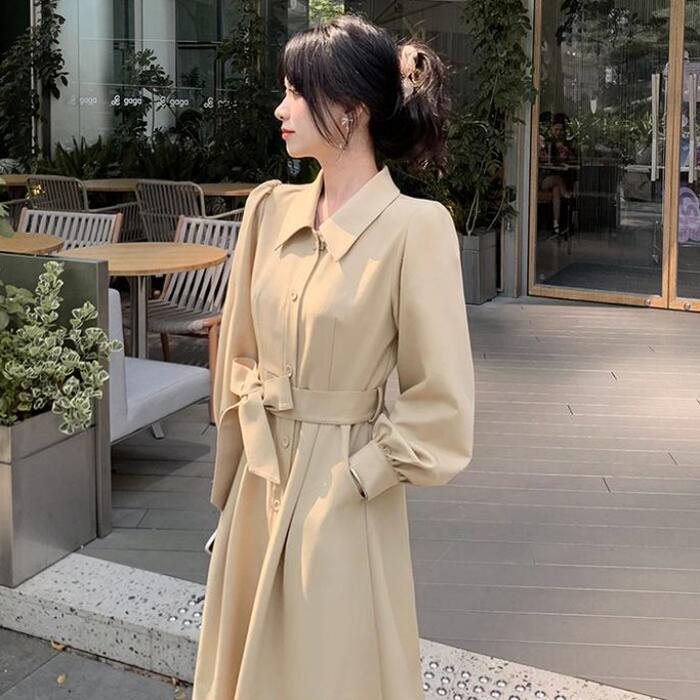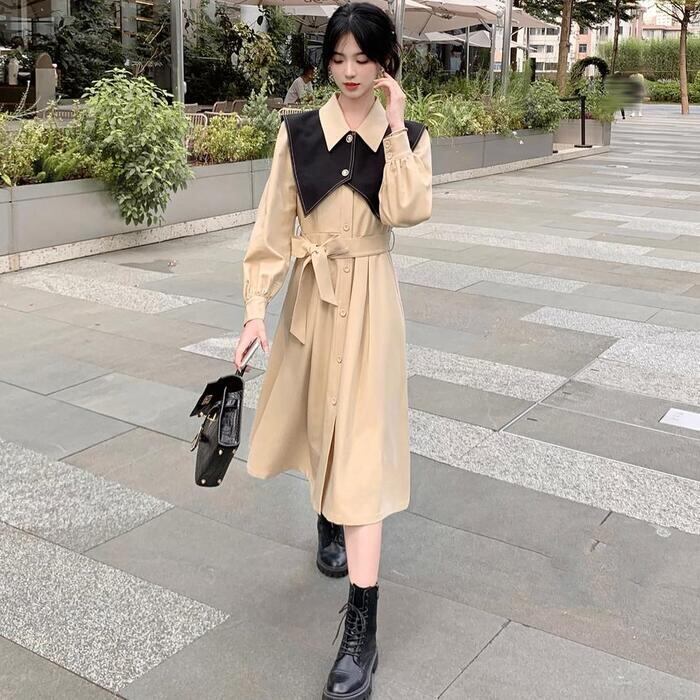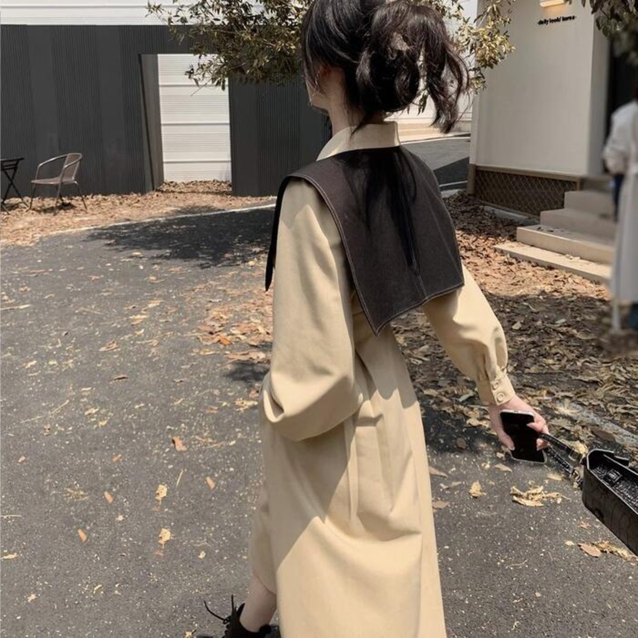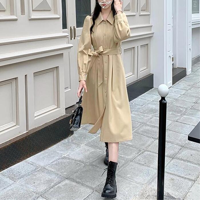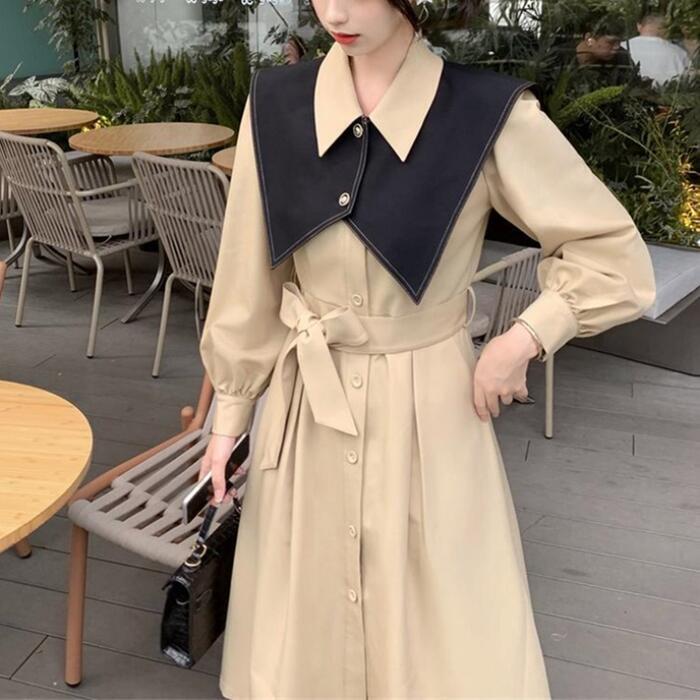 全2種 大きいサイズワンピース ロングワンピ シャツワンピ 袖あり レディース きれいめ カジュアル ミモレ丈 長袖 トレンチ おしゃれ 大人 可愛い ワンピ ドレス フェミニン Aライン 通勤 付け襟 ベージュ 春 秋 冬 20代 30代 40代 50代