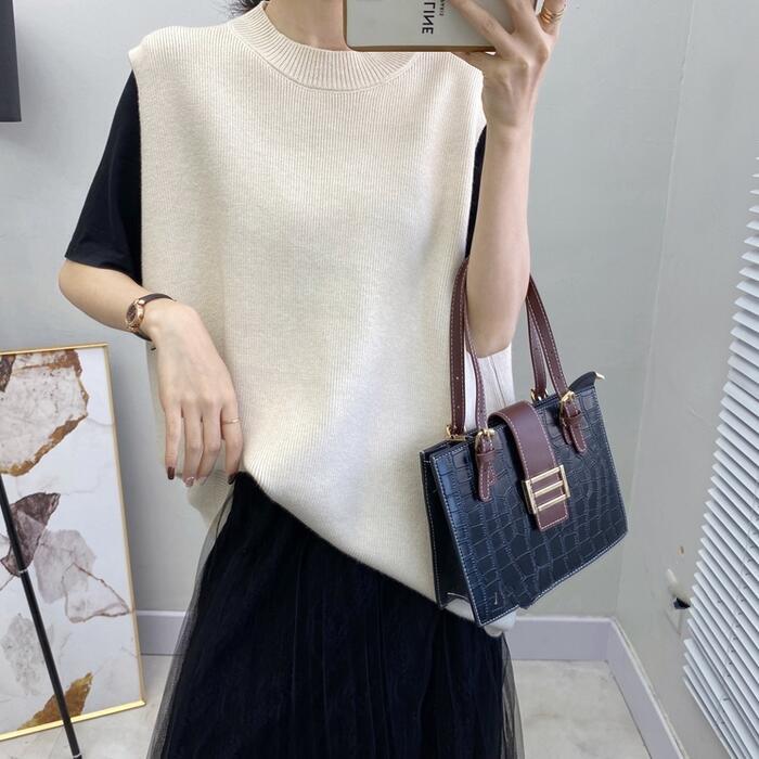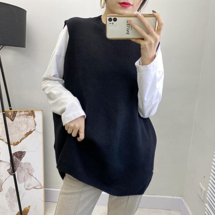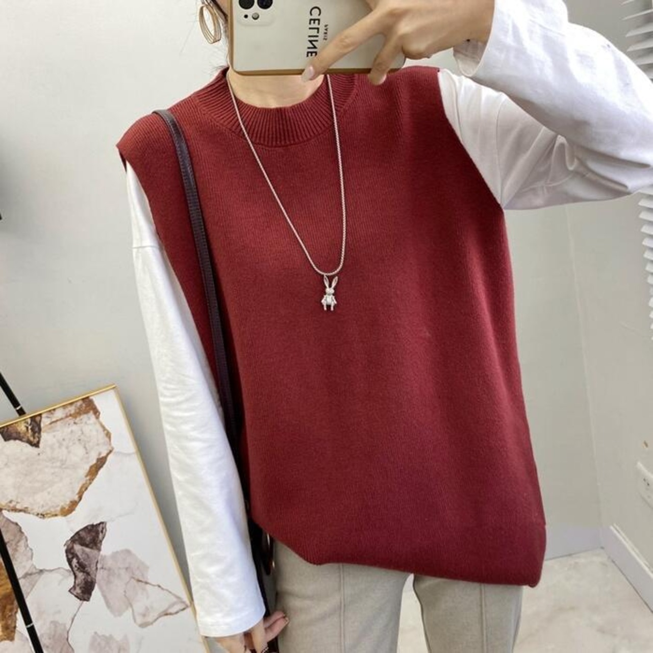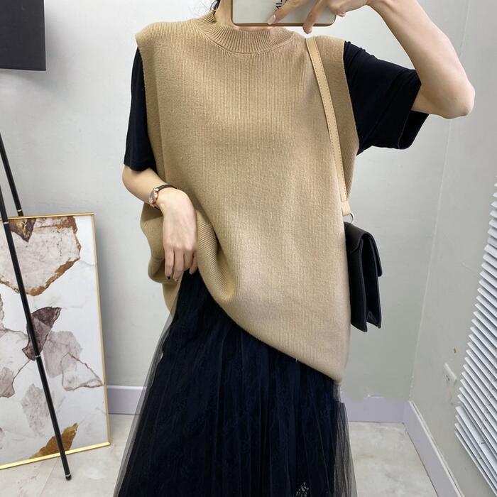 全5色 トップス ベスト ニット きれいめ カジュアル おしゃれ 可愛い フェミニン ノースリーブ ゆったり プルオーバー シンプル ナチュラル レイヤード 体型カバー グレー ベージュ ブラック 黒 ホワイト 白 レッド 春 冬 秋 20代 30代 40代 50代