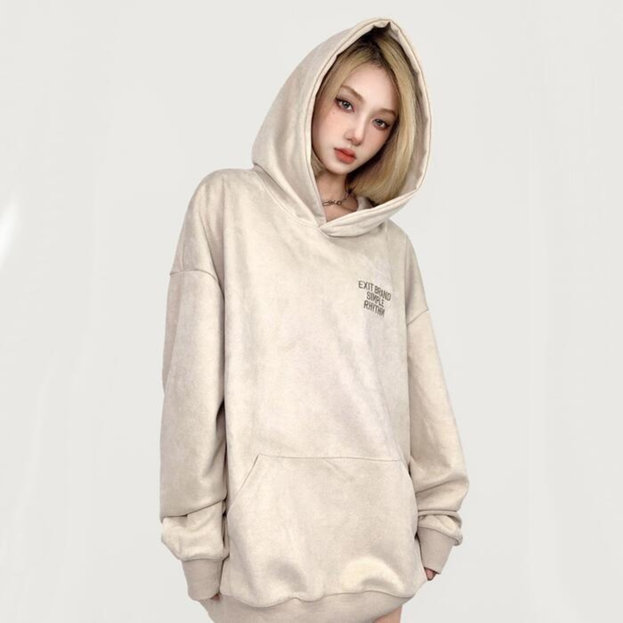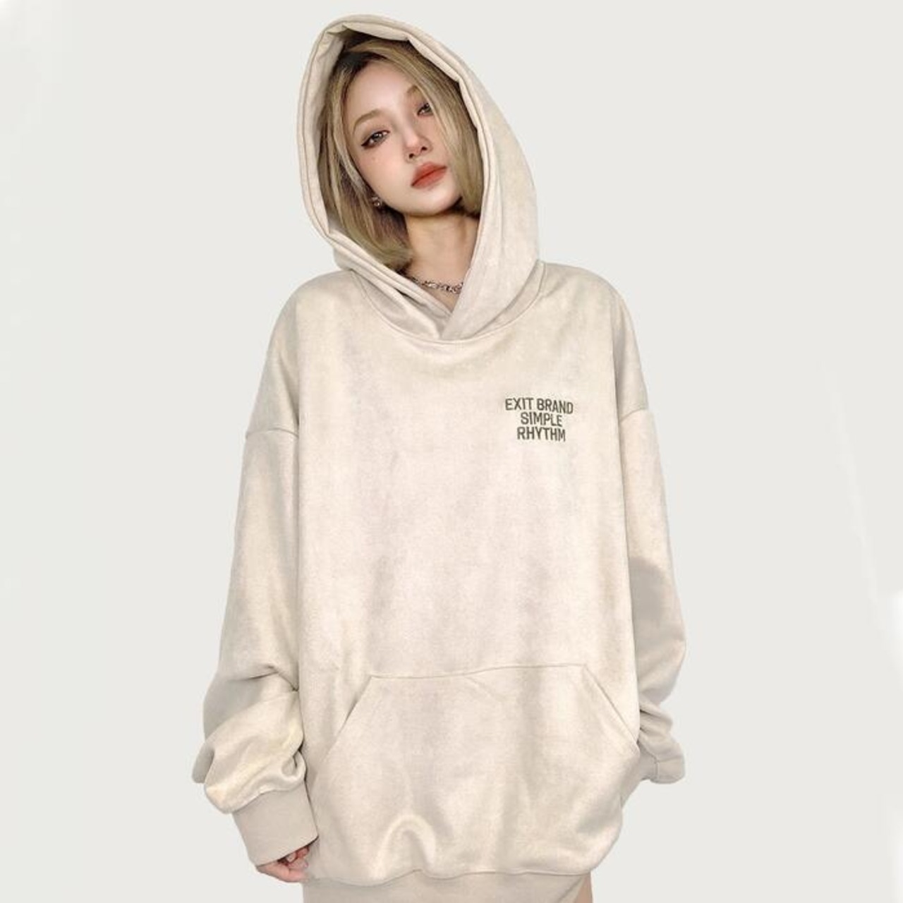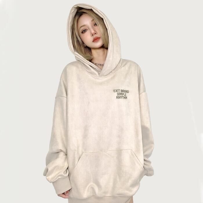 大きいサイズトップス スウェット パーカー フーディー 刺繍 ロゴ 長袖 きれいめ カジュアル おしゃれ 可愛い フェミニン かっこいい オーバーサイズ ビッグシルエット プルオーバー ゆったり 体型カバー ベージュ 春 冬 秋 20代 30代 40代 50代