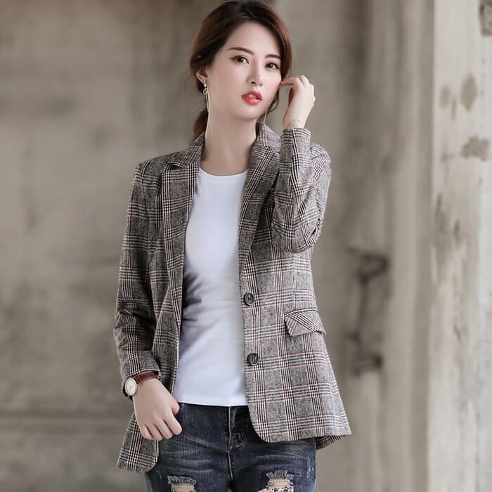 トラッドな雰囲気漂うグレンチェック柄のテーラードジャケット。