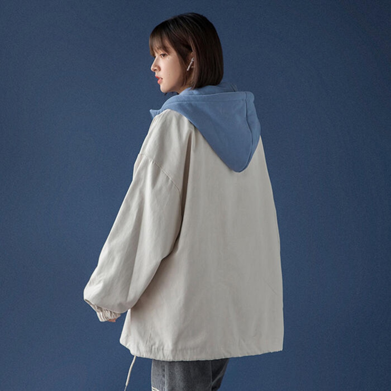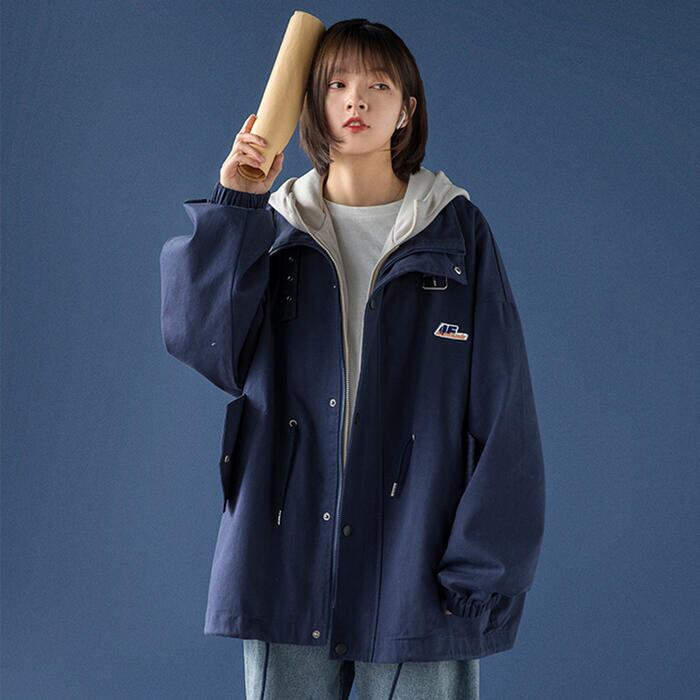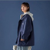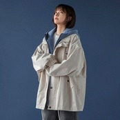 パーカーをドッキングさせたようなレイヤード風オーバーサイズジャケット。