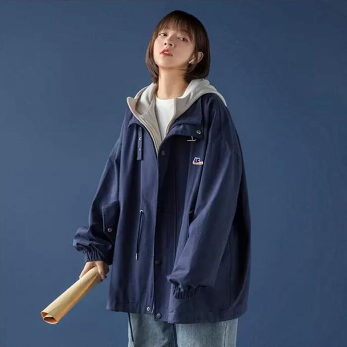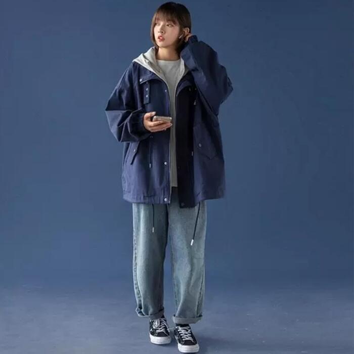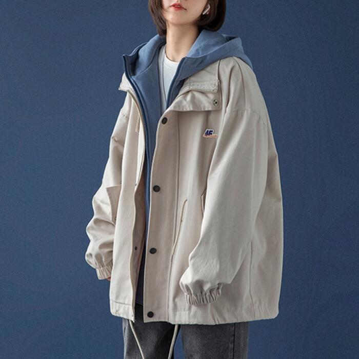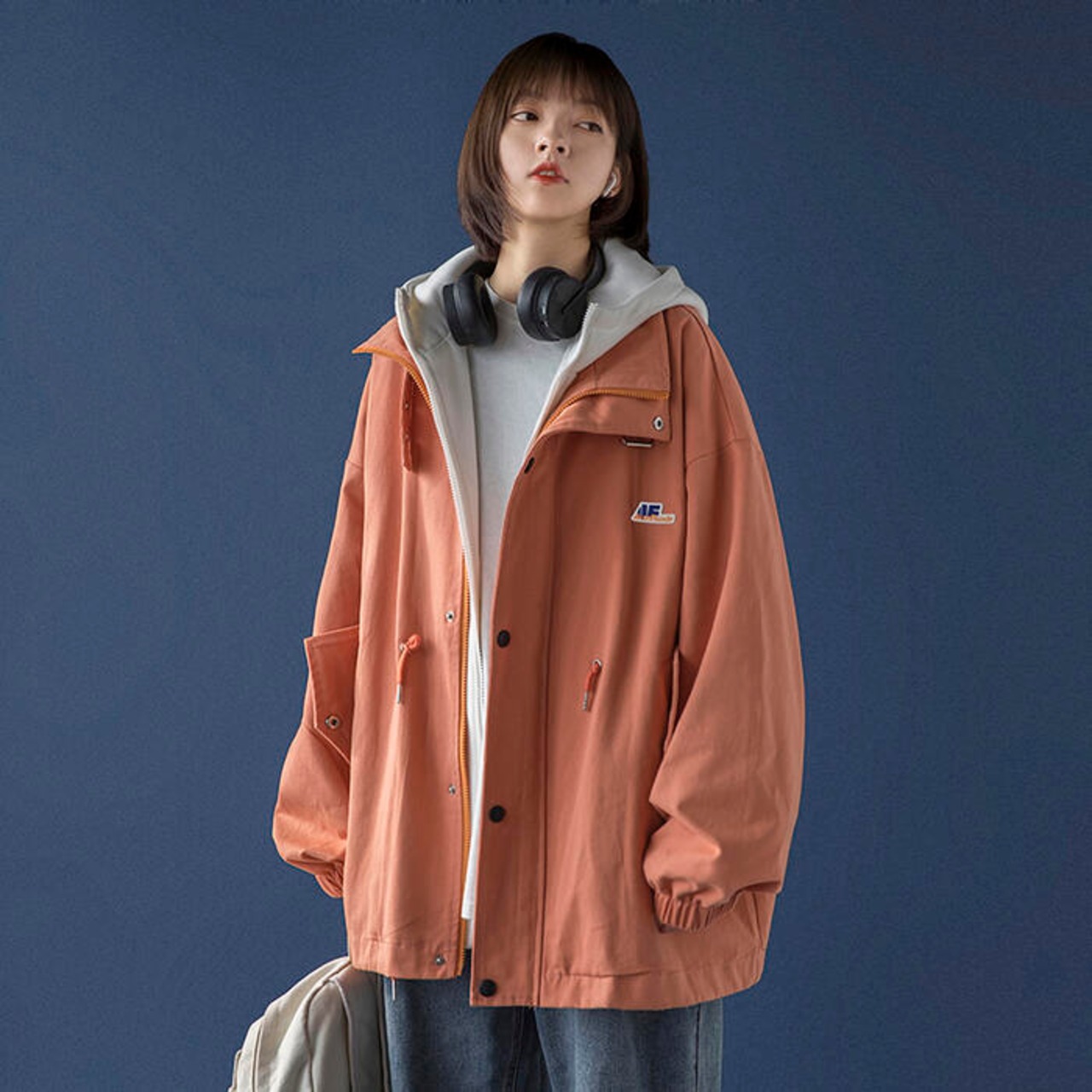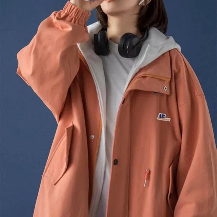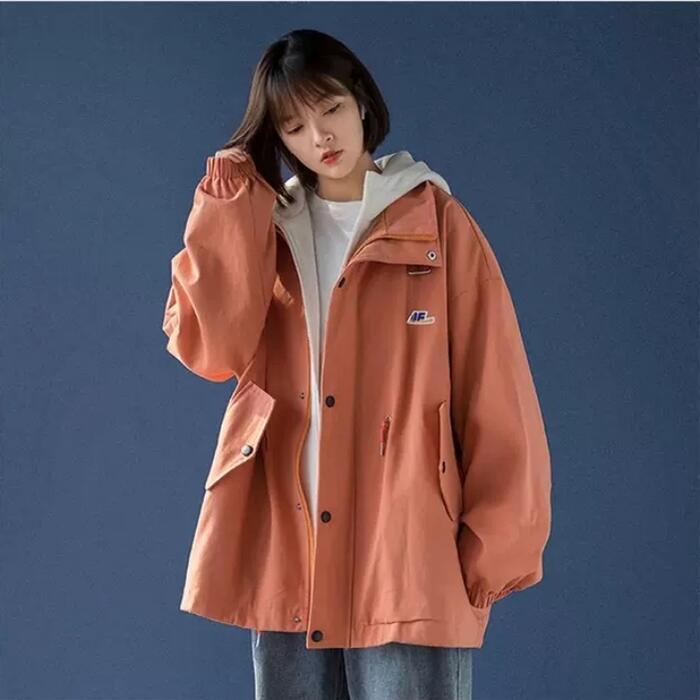 全3色 大きいサイズジャケット アウター ブルゾン 羽織 パーカー フーディー コート レディース カジュアル おしゃれ 長袖 スポーティ かっこいい ゆったり オーバーサイズ アウトドア オレンジ ベージュ ネイビー 春 秋 冬 20代 30代 40代 50代