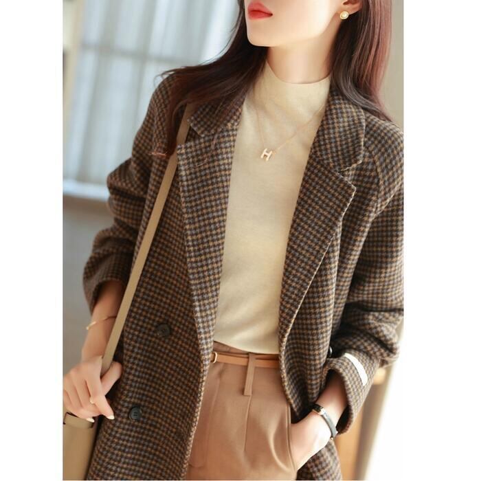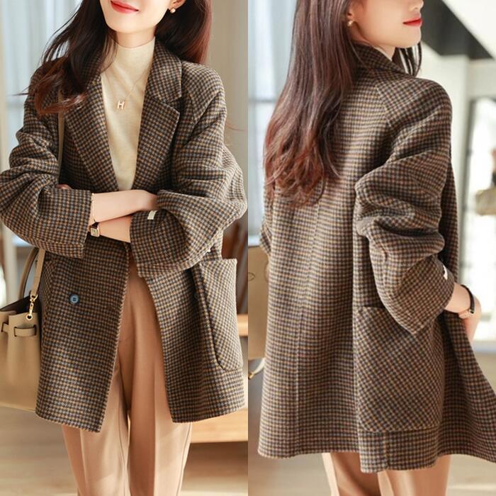 コート チェスター テーラード ジャケット 千鳥格子 アウター 羽織 レディース きれいめ カジュアル おしゃれ 長袖 クラシカル トラッド シンプル ミドル丈 大人 可愛い 大きいサイズ ブラウン 春 秋 冬 20代 30代 40代 50代
