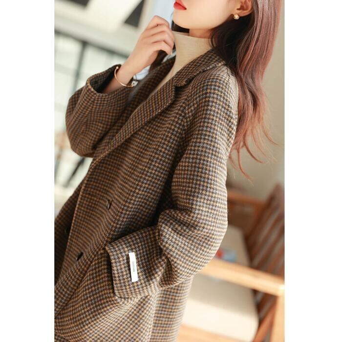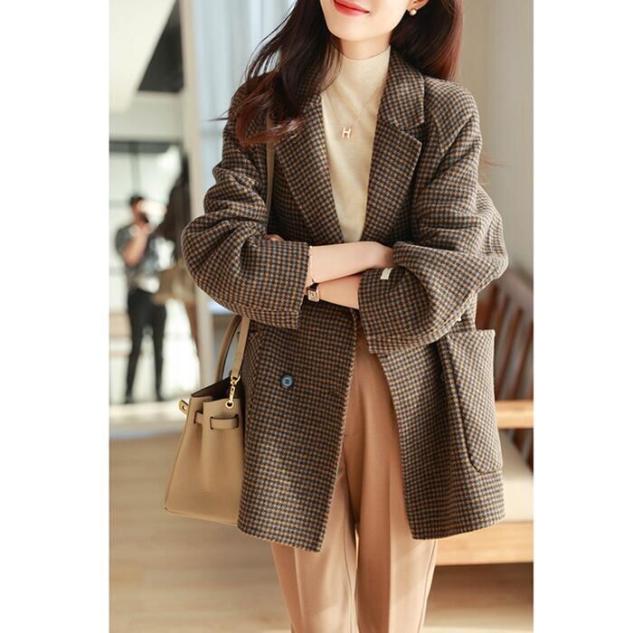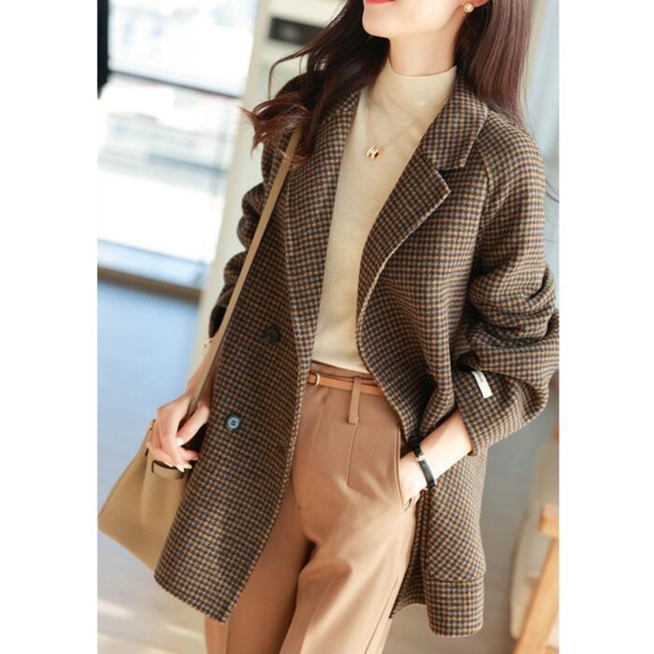 暖かみのあるカラーのクラシカルな千鳥格子柄コート。