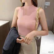 ラメのキラキラ感が可愛いノースリーブハイネックニット。